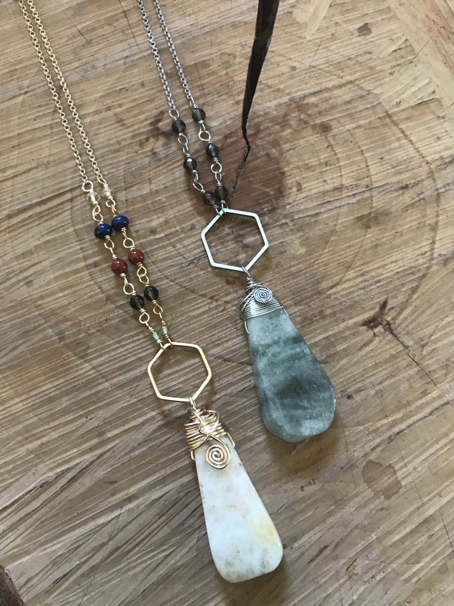 I soak in inspiration everywhere I go, from patterns in nature to color combinations across all mediums of art. My pieces always contain semi-precious gemstones and high-quality metals; however, I do not restrict myself to a specific style. In fact, it is actually quite the opposite. I am always trying to challenge my boundaries and learn new methods. My favorite way to do that is by working with customers to design personalized gifts or wedding jewelry tailored to their specific needs. Ironically, I myself do not wear jewelry that often. However, I love the feeling I get when my work brings a smile to the faces of my friends and family, who are my biggest supporters! Like many other small businesses, I hope that my work spreads an essence of community by allowing people to shop locally at an affordable price without compromising quality.