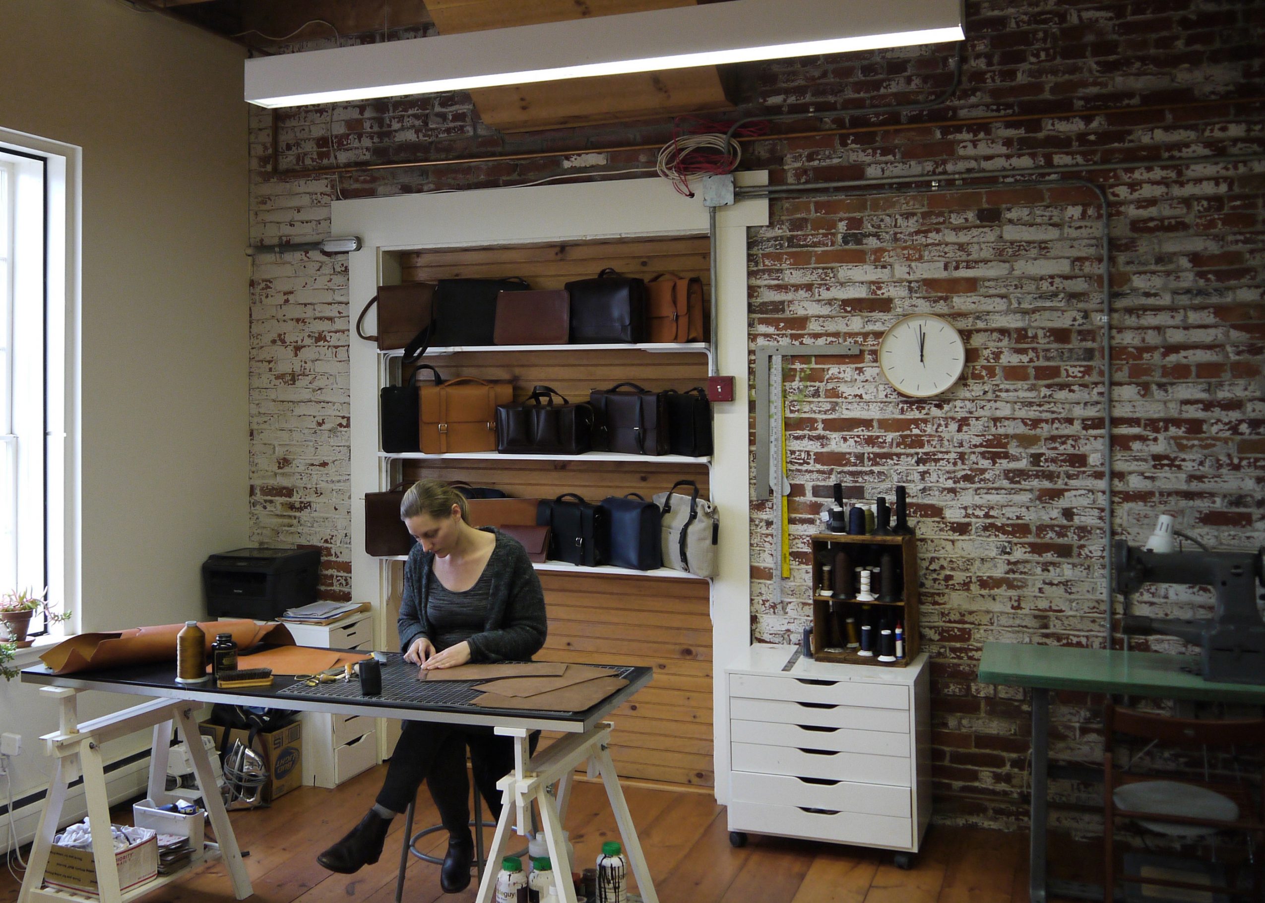 We are a small artisan bag company called basader. Our process is heavily driven by a mission to create lasting pieces and promote timeless design principles. All of our work is produced in our studio in Harrisville NH, where we laboriously cut, assemble and finish our pieces. Through experimenting with new techniques, materials and finishes – and even just wearing our own work – we’re continually improving upon our product offerings. My husband and I wanted to make high-quality, minimal and timeless designs for an affordable price. I take inspiration from Scandinavian temporary design and mix it will heritage fashion. My focus is simplification — we use the highest quality leather and hardware, but try to minimize the heaviness of the bag. Our customers will see rigid classic bags with clean lines. They will see a bag that is void of pretentious logos and branding where the beautiful finish of the leather and clean lines speaks its value.
