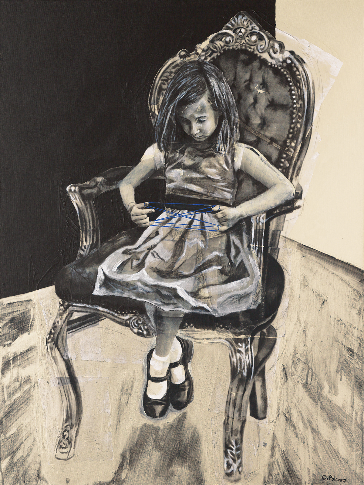Sketching is not a big part of my process. I generally get an image in my mind, I might write down a note or two about the idea so I don’t forget it, then I move on to acquiring the photographic reference that will be used in my piece. As much of my work deals with childhood, I am very lucky to have my nieces which are always willing models!