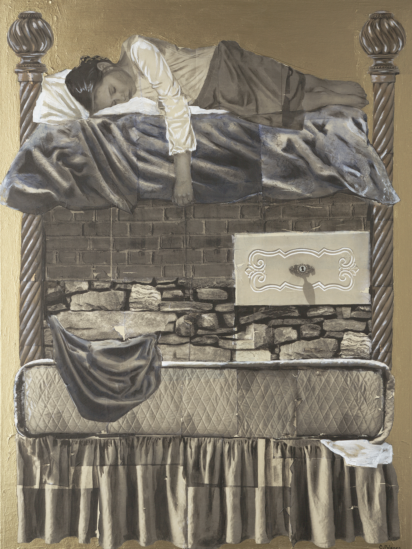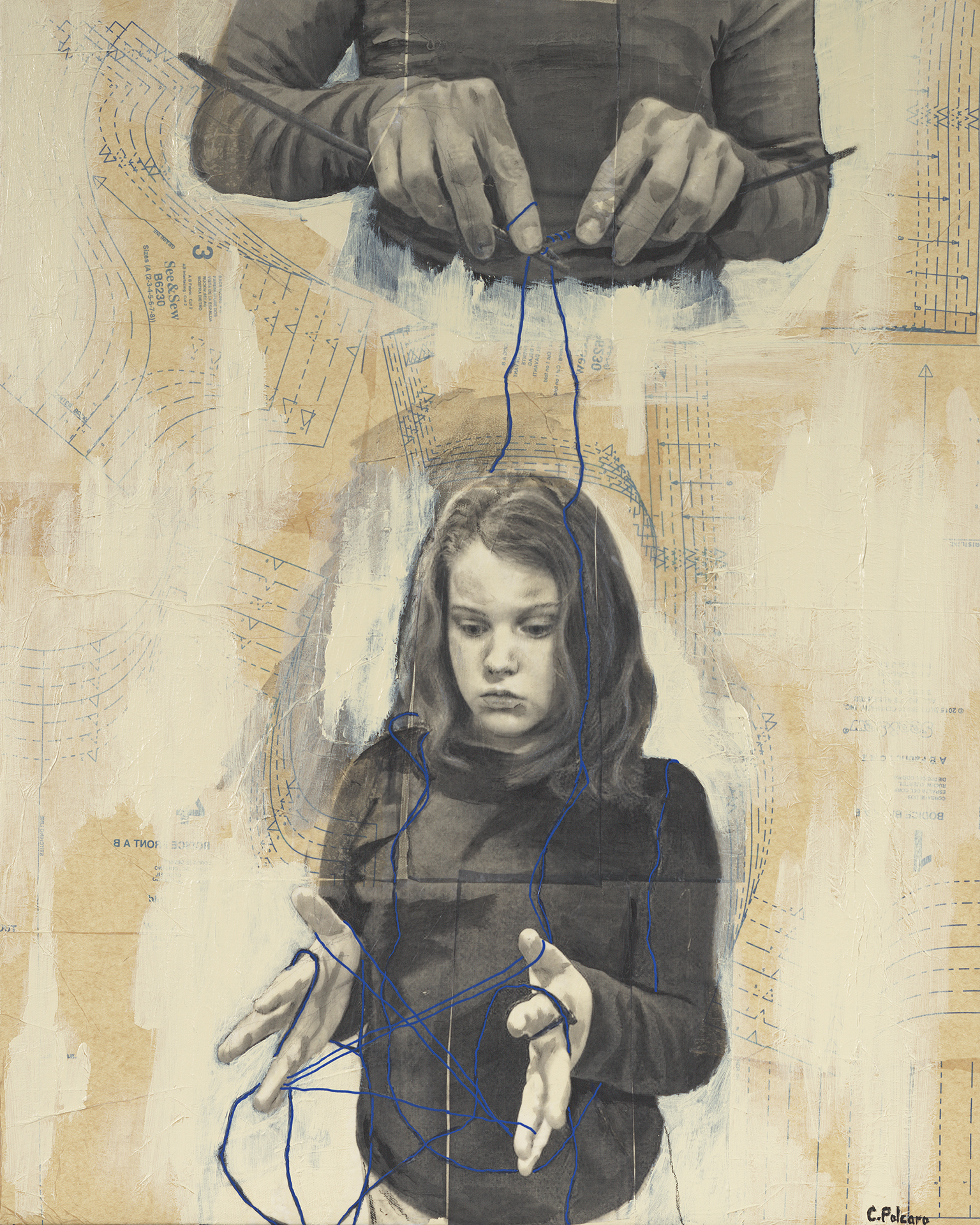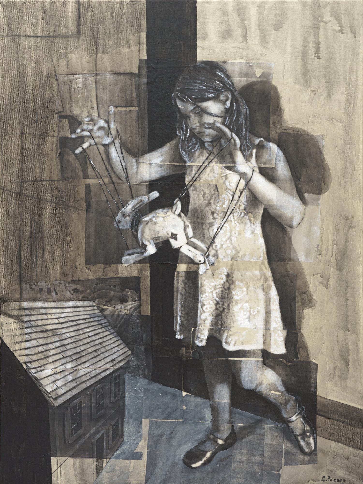 My work is a combination of photo transfer, acrylic paint, and various other media on canvas. The subject matter varies greatly but the imagery often centers around childhood, fairy tales, and memory. I grew up in a fairly volatile household and often retreated into books. The original Grimms fairy tales were some of my favorites. I also loved classics such as Anne of Green Gables, The Secret Garden, A Little Princess, and so many others.