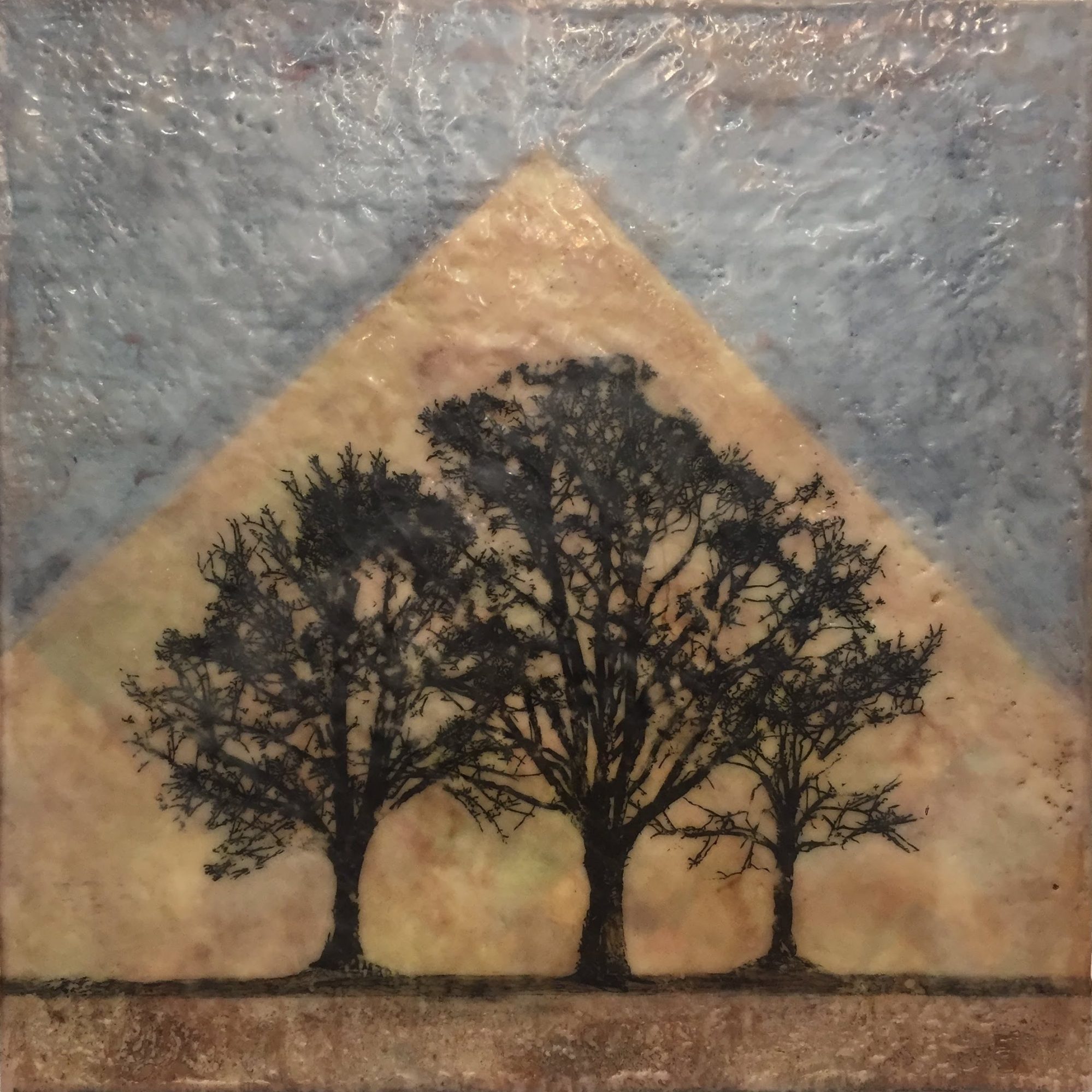 The process requires both patience and spontaneity. It’s a rare marriage of being in control and completely losing control in the process. It’s labor intensive, and there are many steps involved. But the outcome is a dreamy, ethereal image with texture and appeal unlike any other art form. You truly have to see encaustic works to really appreciate all they have to offer. Photos rarely do them justice.