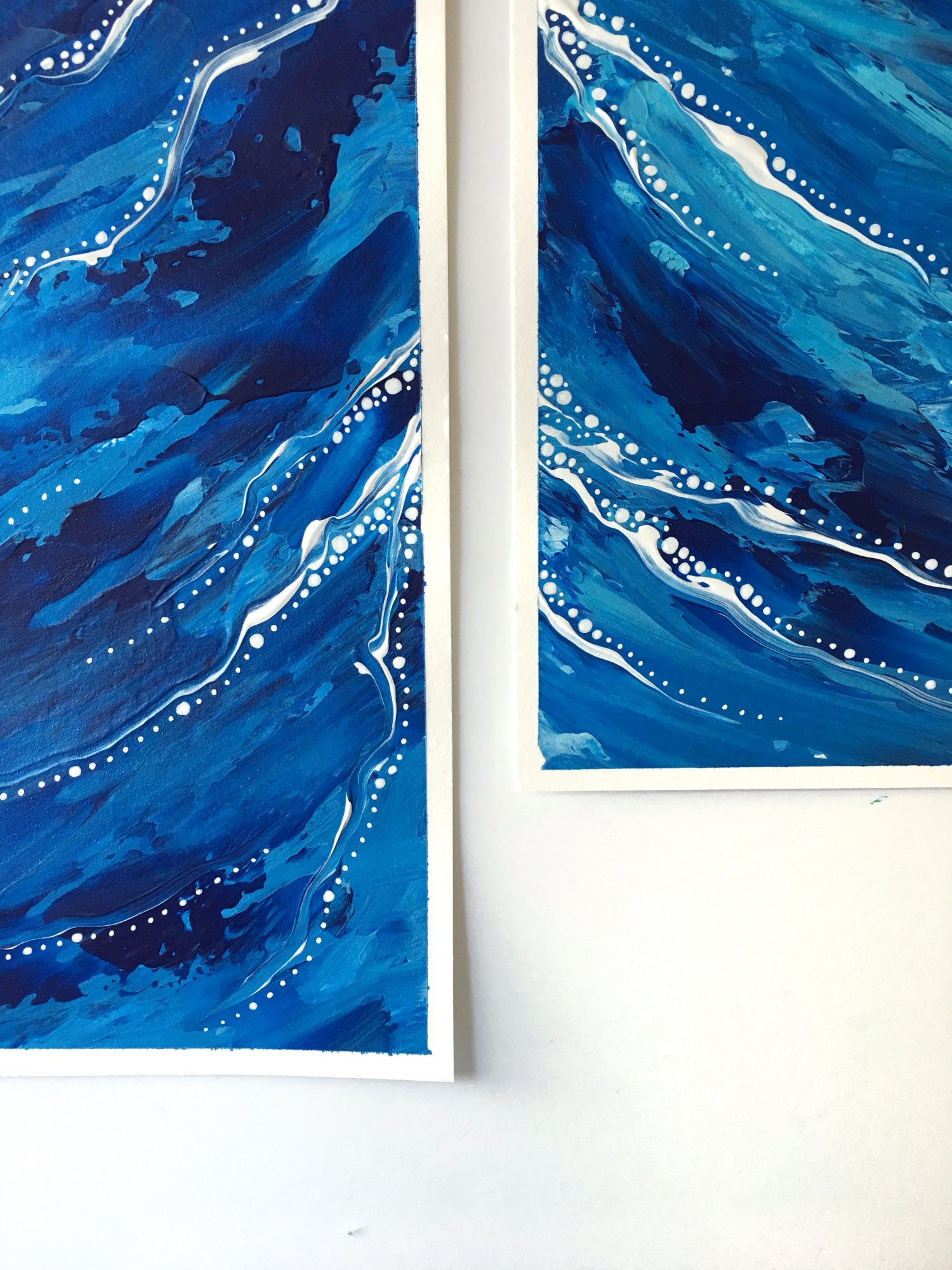 My business is Kate Tangney Studio and I create abstract paintings that translate raw emotion into art through color and texture. I think emotion is uniquely universal, feelings of happiness and contentment or grief and anxiety can have such a profound impact on how we view and interact with the world around us. Although my paintings are abstract, they are often reminiscent of the ocean and other natural forms.
