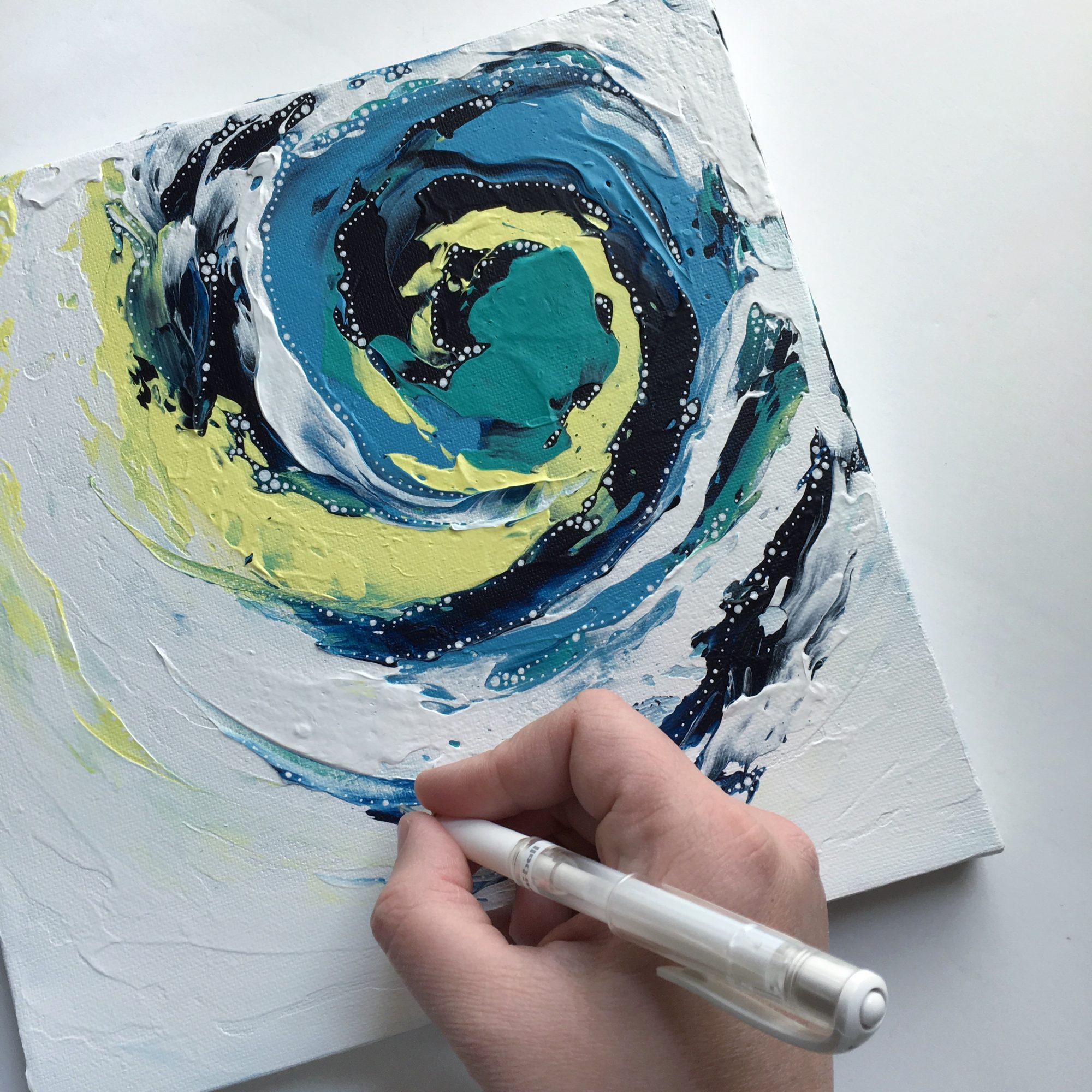 My goal is to make work that people can relate to and that will hopefully start a conversation. And that’s why I love abstract painting so much – everyone can see something different and have different reactions to it. There is no right or wrong.