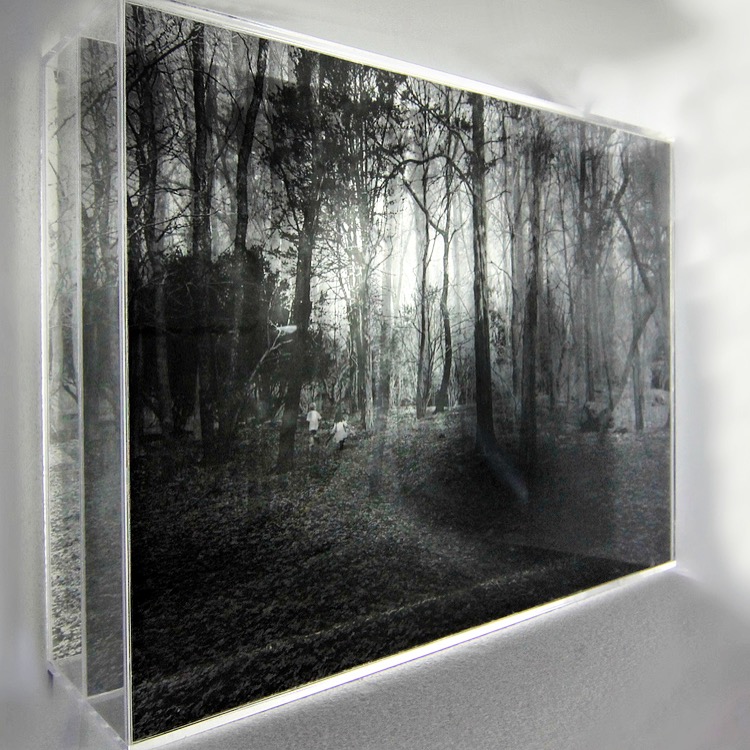 That was when I began fashioning plexiglass boxes to suspend the layered transparency images in, and the images were all of my children in various outdoor locations, running away from the camera and toward their own imaginations and curiosity. Not much of a craftsperson, my initial attempts lacked any sort of polish, but the results were exciting, and the images were moving.