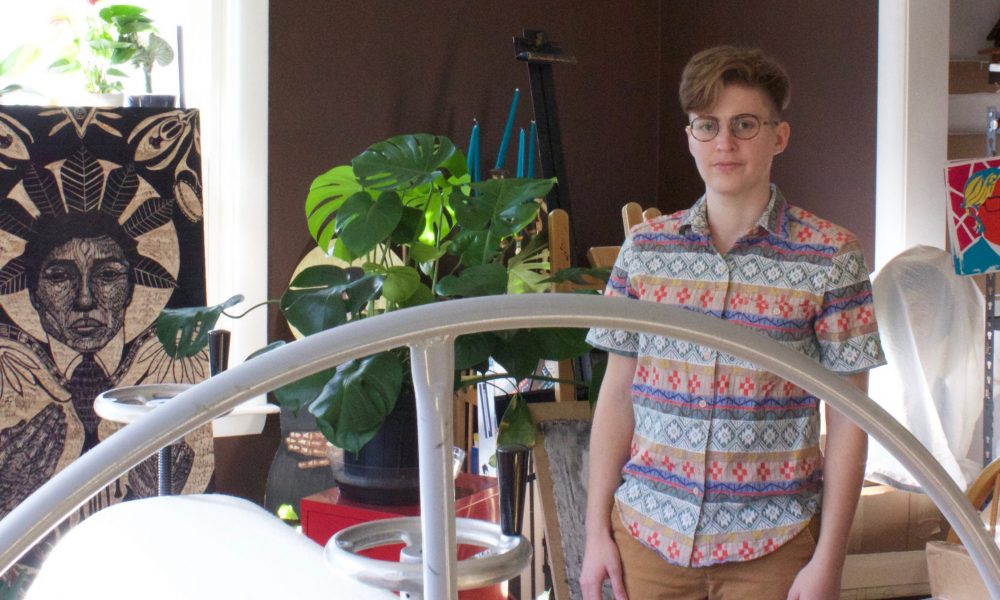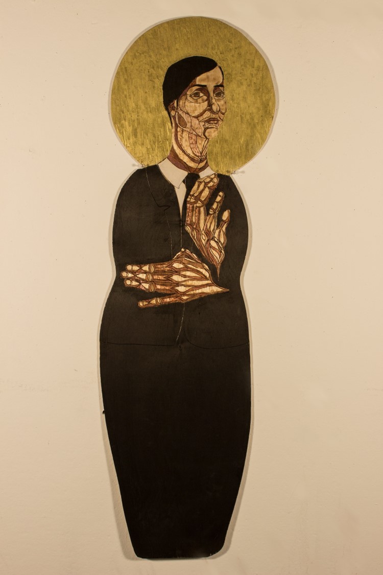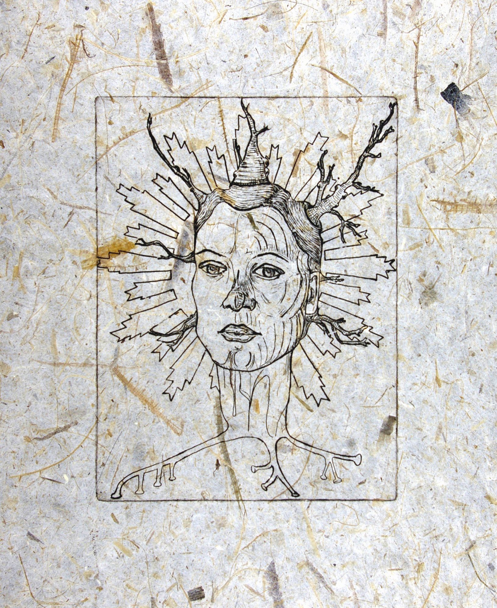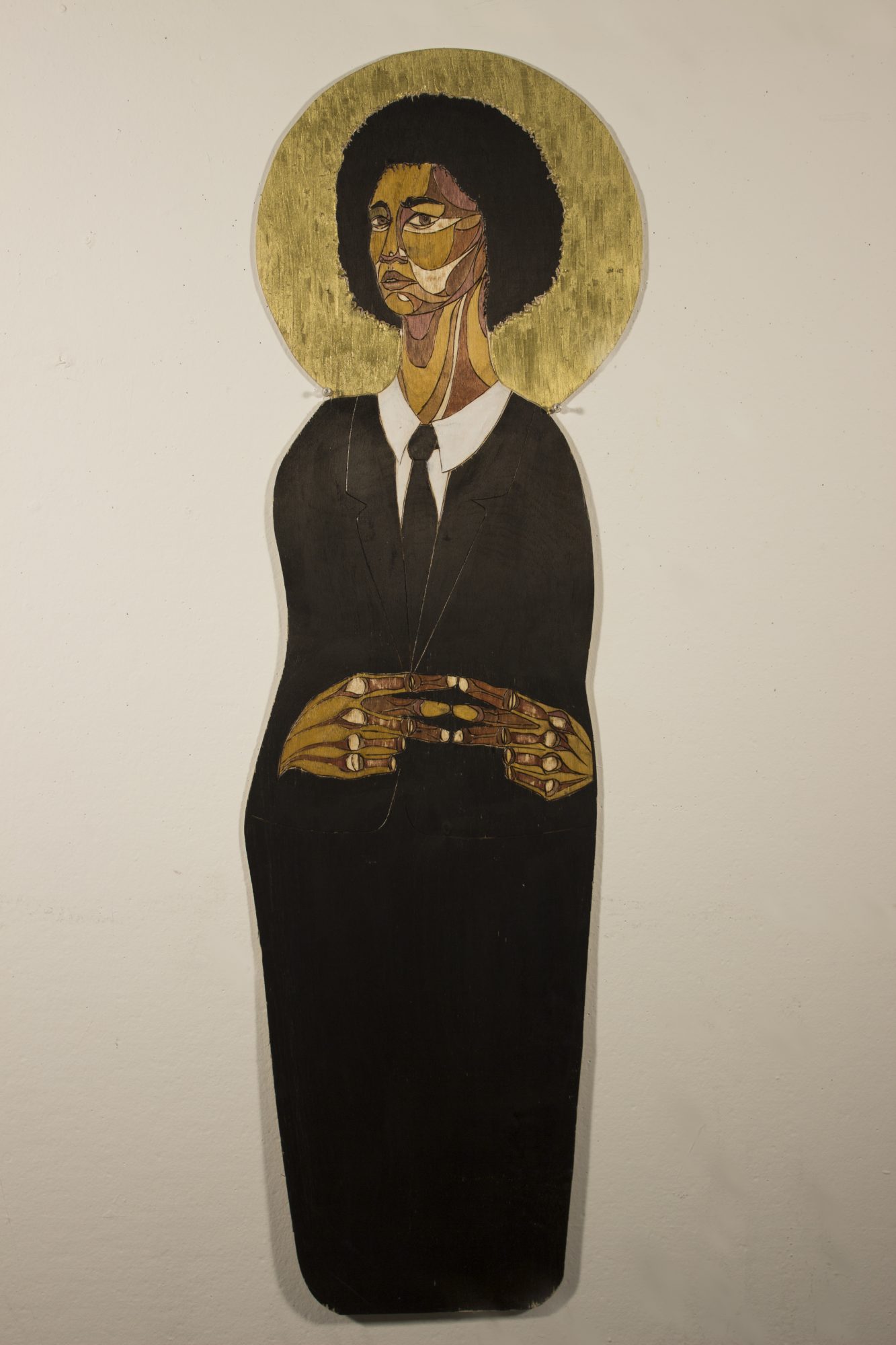 I work primarily in printmaking. I usually start with a very traditional substrate such as a relief print or an etching and use those prints in more elaborate mixed media pieces. A main focus of my work is the magic of my people and the Island. I am Puerto Rican and extremely proud of my roots, as a diaspora Puerto Rican and in light of the humanitarian crisis existing previously to, but further aggravated by Hurricane Maria it is near impossible to separate my identity from my work. My artwork explores gender and representation through religious ornamentation, but most importantly I want to portray the resiliency, dignity, and self-sufficiency of Puerto Ricans. I synthesize deities that merge androgynous figures with the vegetation of the island paying homage to the syncretism, the melding of different cultures, that is omnipresent in the Caribbean experience.