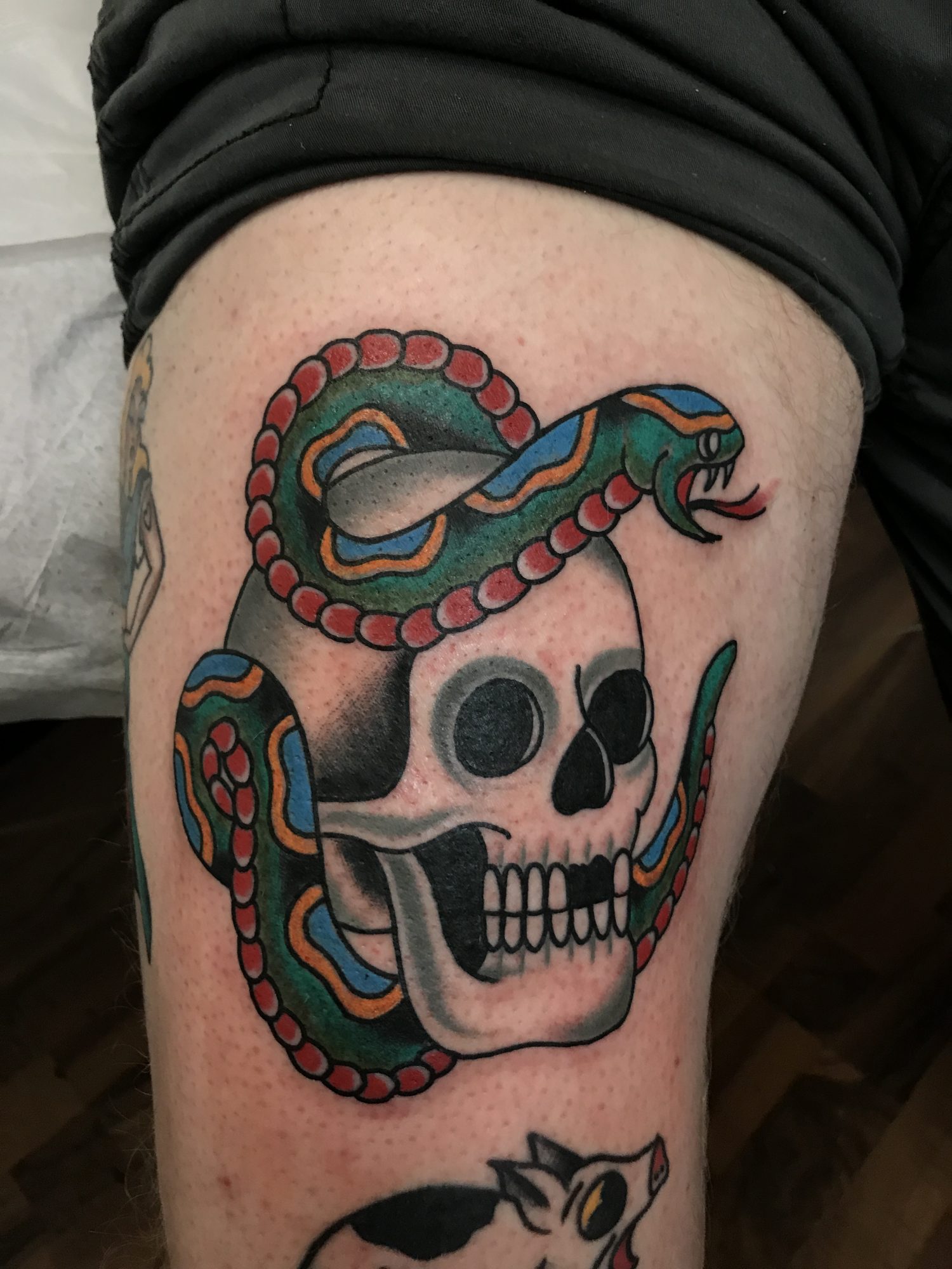 I grew up in Middleton, MA skateboarding like most of the kids my age. I was always drawn to the graphics on the bottoms of the decks and the imagery used. That sparked my interest in the art world. When I turned 18 I got an apprenticeship in Billerica to learn how to tattoo. That was the beginning of my career. From there I went to work at a few shops around Peabody until I landed at Sacred Harp Tattoo in 2008. That shop completely transformed my work into what it is now. I got to tattoo with people I admired as a young tattooer, and it helped me grow and learn a lot. I worked there until June of 2018 when I relocated to the shop I am currently tattooing, Lightwave Tattoo in Saugus, Ma.