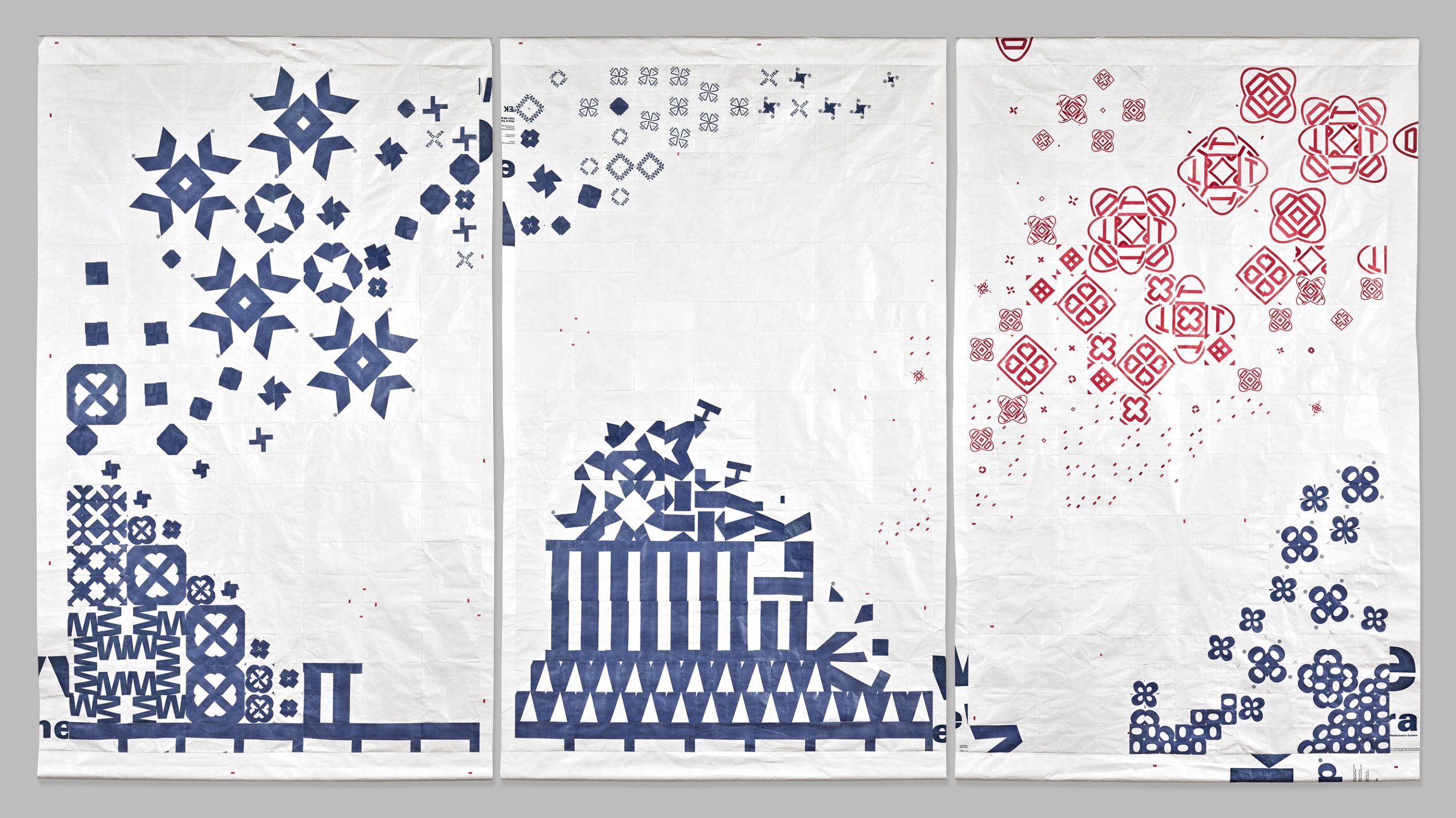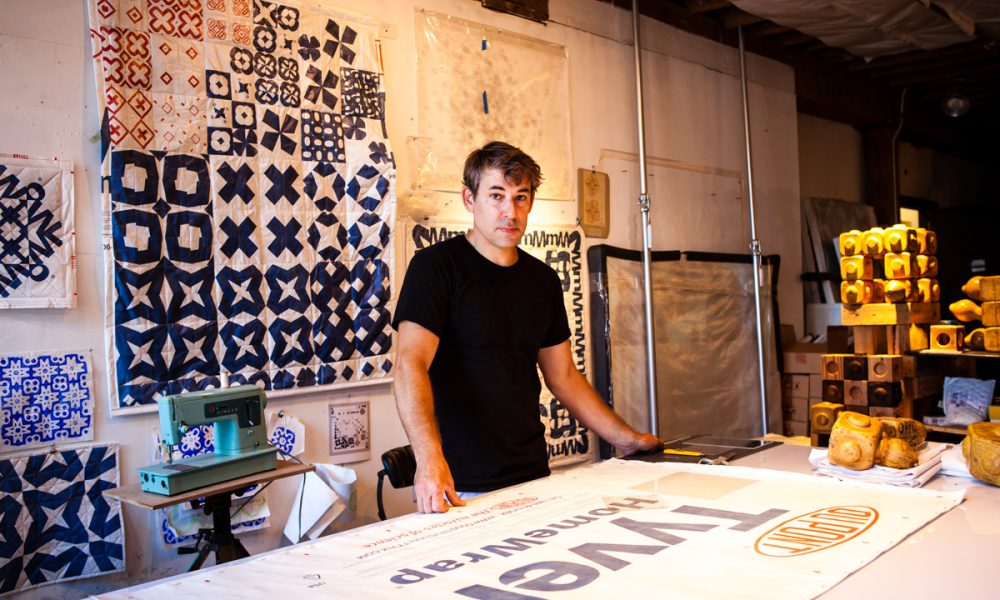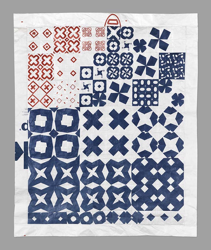 My work is typically project based. This could start with a material, an object, or construction technique as inspiration. I find it can be limiting to categorize art work as painting, design, sculpture, architecture, etc. so I try to keep an open mind and just create. Recently I have been interested in quilting as a process, and also milk crates as a ubiquitous urban object. For me these share similarities in modular pattern and in the way, they stack and fit together. I have been creating sewn quilts made from repurposed Tyvek Home Wrap, and more recently I have been building milk crate forms from found and reclaimed materials. I see these as uncanny representative objects that can exist both inside and outside spaces created for the display of art. I hope these works cause the viewer to reconsider the original sources and how they exist and function in society.