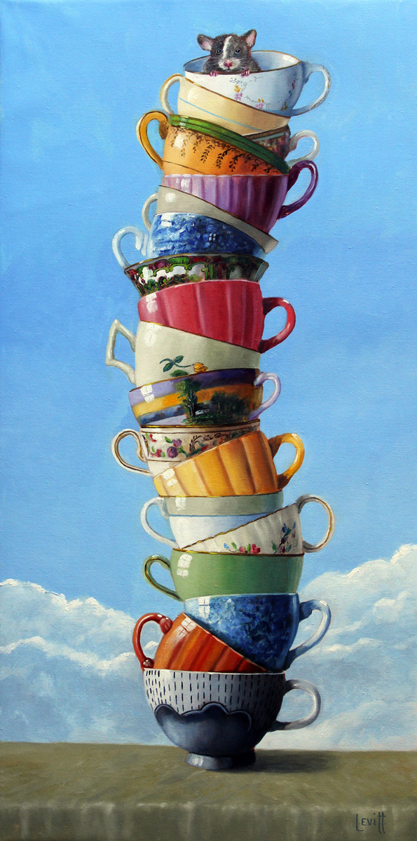My paintings vary in theme from classical ‘Old Master’ still life set-ups, to quirkier word play paintings. Titles are important to me as they give the viewer insight into the concept I’m trying to convey. Humor also plays out in much of my work and I strive for a narrative that will capture the viewers’ attention. My work combines naturalistic detail with quirky offbeat compositions that often juxtapose ordinary objects in unexpected ways.