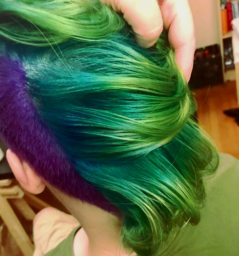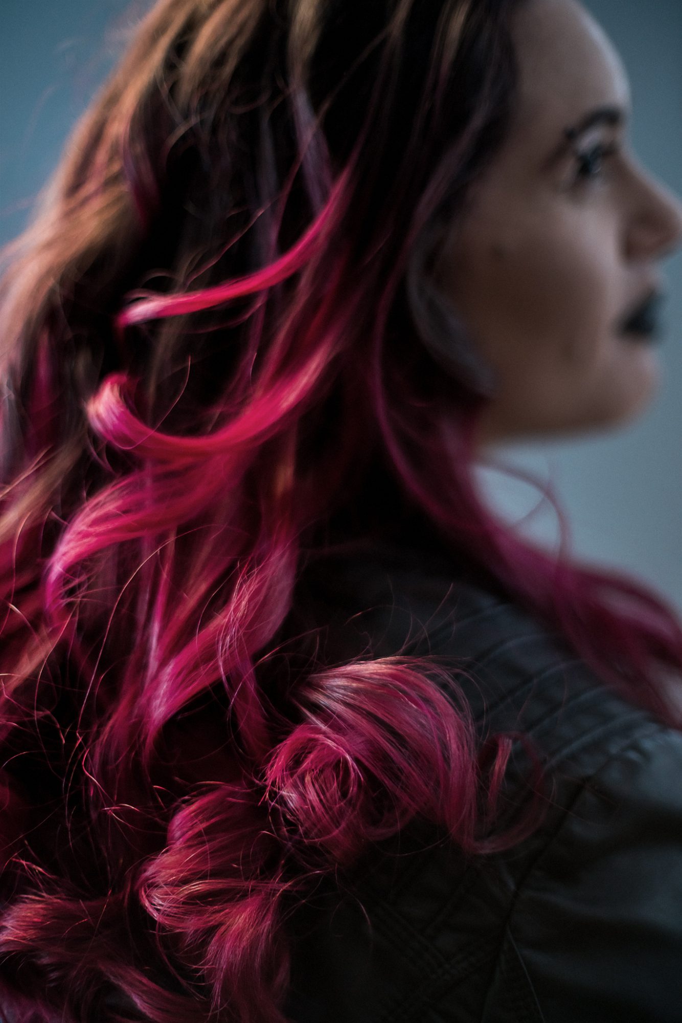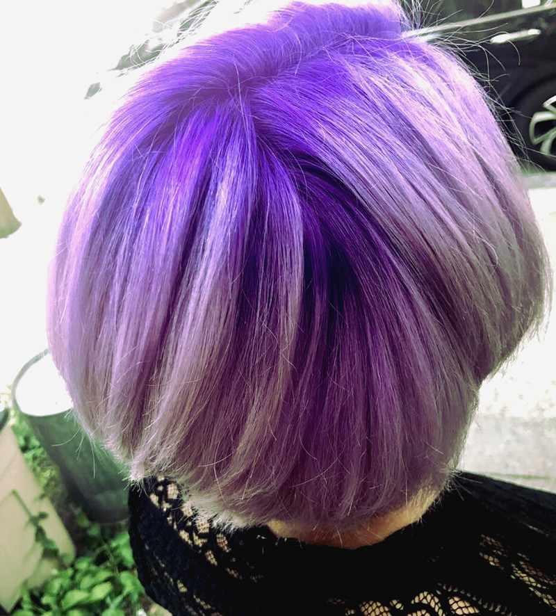 Well, I guess you could say that I’ve been dedicated to art in some way, shape, or form, since I was a kid. I started with singing and branched off into fine art. I loved to sing in choirs, and I really enjoyed still life in pencil. And like most artists I was always a little off-center, aesthetically. I started coloring my own hair when I was 13 and found a major passion in it. I practiced on myself and friends a ton, at every opportunity really, and really got myself familiar with the how to use lighteners, specifically bleach, safely, and so that I could achieve the truest colors possible! To this day fashion colors/vivid are my passion; bright reds, purples, blues, all of them! And I’m so incredibly lucky to have a job now that allows me to continue my passion in coloring hair and really experiment with color pairings and placement.