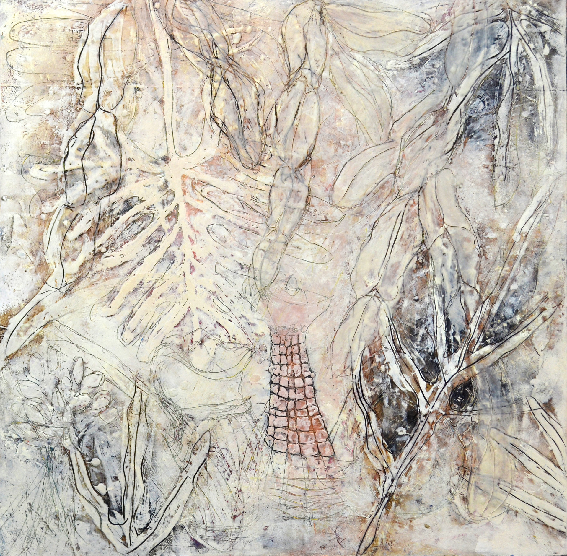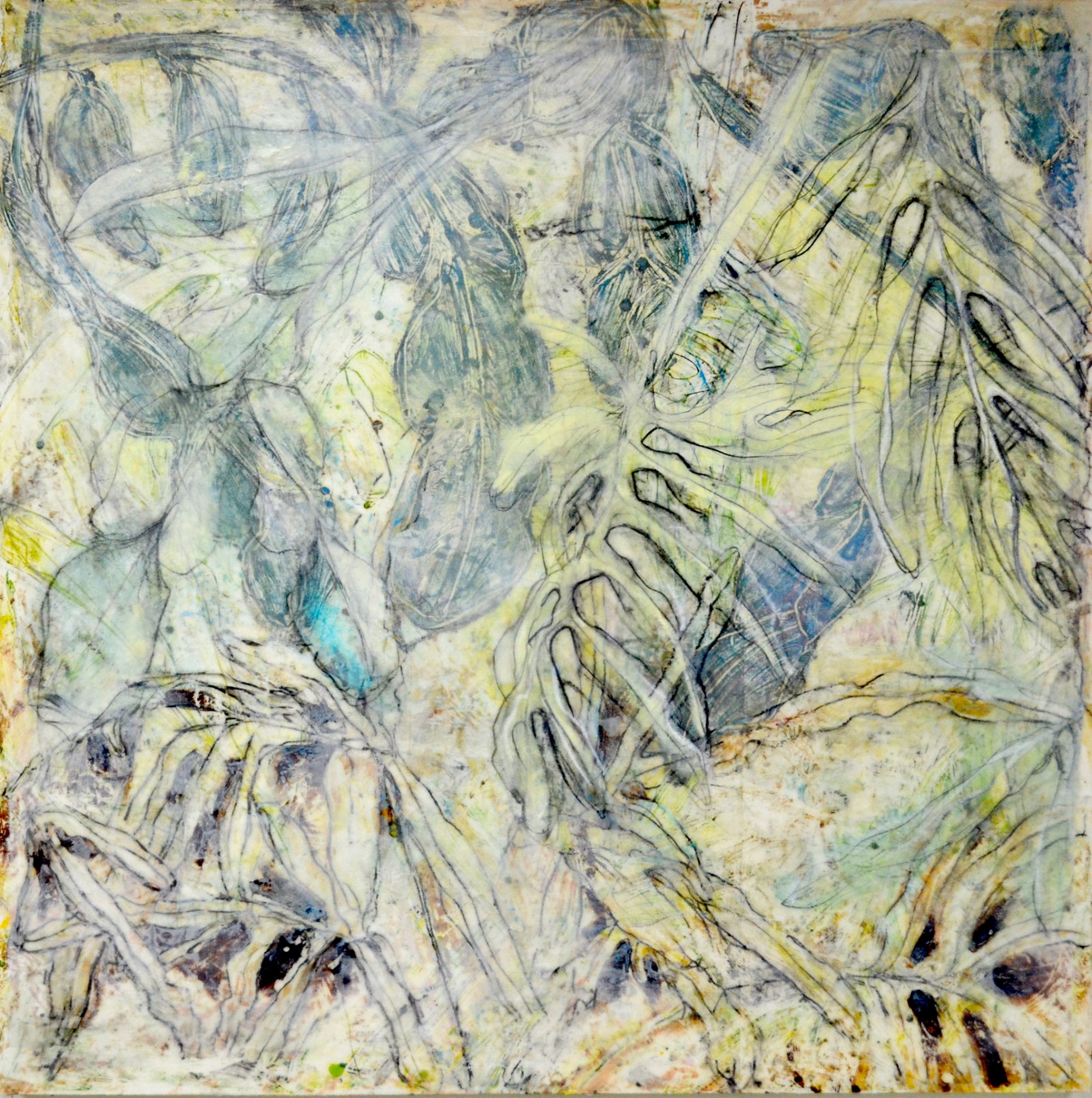 My current work is about our relationship to the natural world. My paintings with drawing, in oil, wax, and mixed media, of plants and their foliage interspersed with objects of “still life”, celebrate the complexity of the natural world and our place in it. I work with plants every day and have come to believe that plants and trees are intelligent beings that we have disrespected in so many ways, and we must reconnect. Our roots are in the earth, amid the myriad forms of life in the soil, in the wind, and in the seas. Painting is the best way I can express that passion. I hope viewers will find common ground in that, perhaps even be inspired to learn about plants, and then thank them for all that they do for us.
