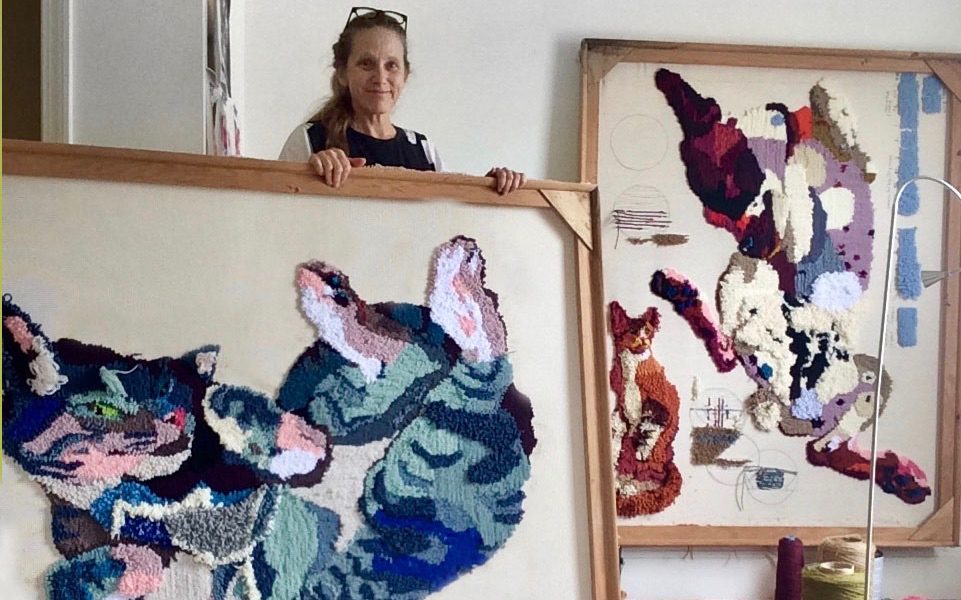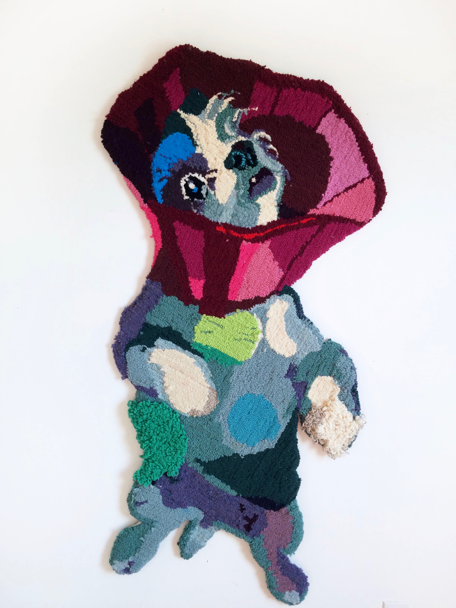 My tufted portraits celebrate the lives of local rescue animals and adoption narratives. By mixing disparate motifs and media, my art aims to reframe the use and meaning of animal bodies in our culture.