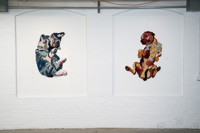 My goal is to update the idea of the bucolic textile or animal pelt rug into something both joyful and critical. I aim to refocus representational ownership to explore adoption narratives and to confront the contradictory beliefs about animal bodies in our culture.