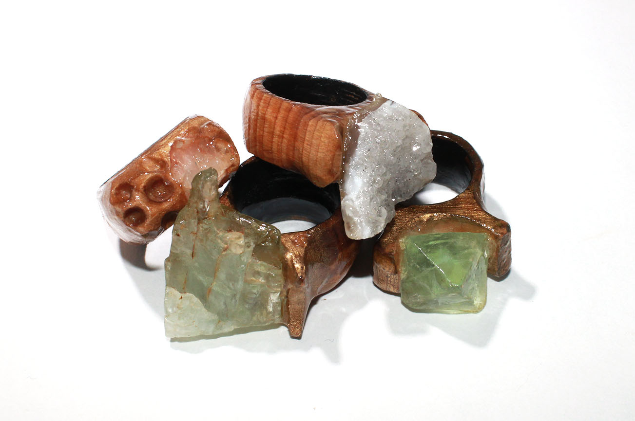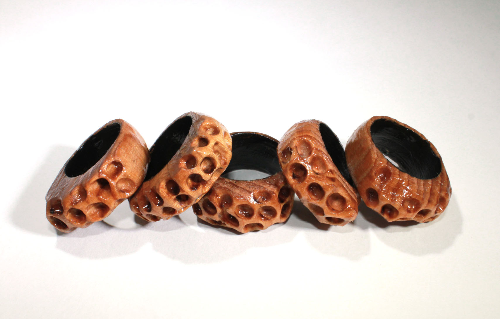 My work is multidisciplinary which simply means that I work in many mediums. I make wearable sculptures or sculptural wears. My current body of work is a collection of hand-carved wooden rings made with the intention to use organic materials that echo an inherent lineage.