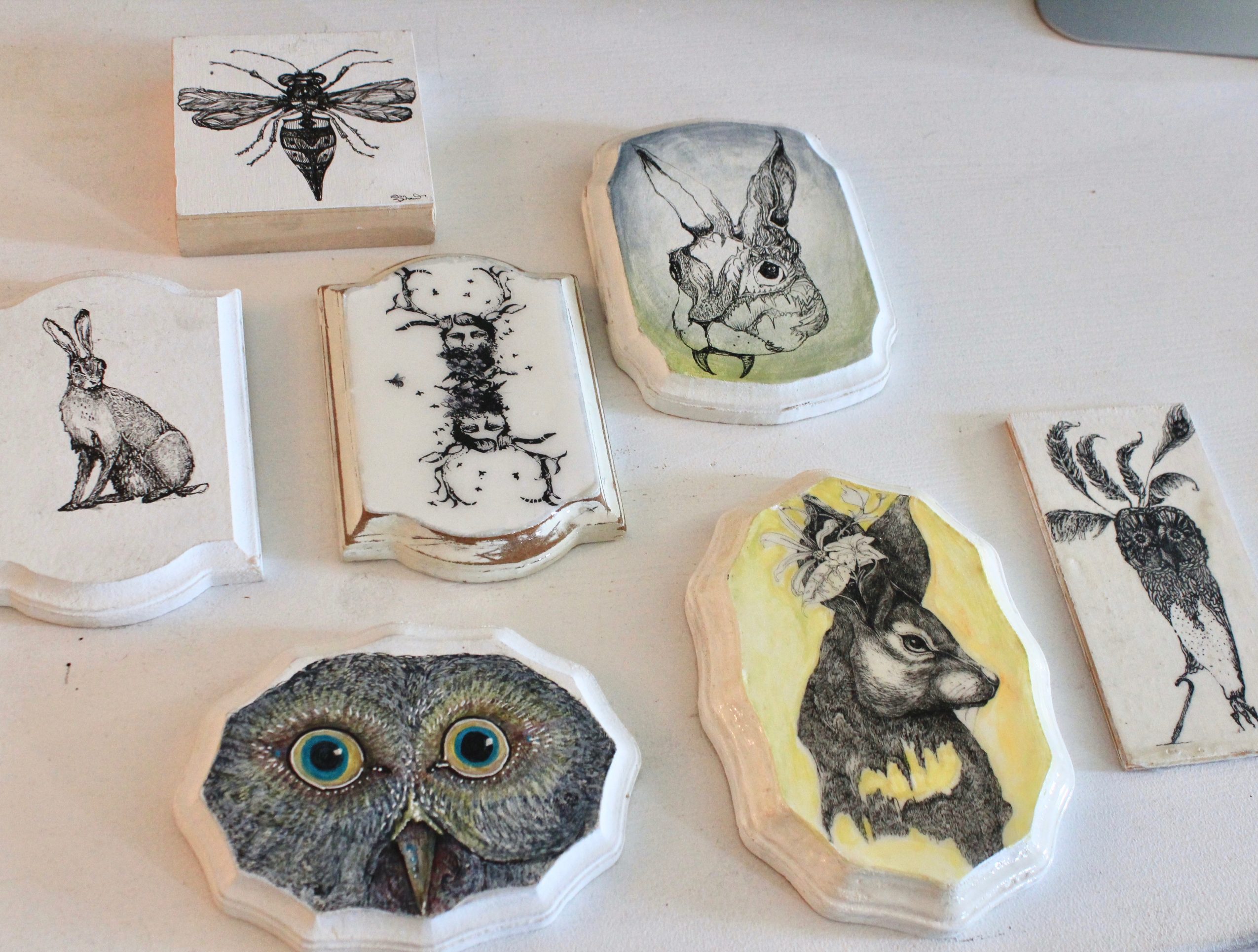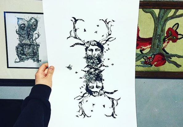 Shaw holds a degree in three-dimensional fibers, from Massachusetts College of Art & Design. With prior studies in clothing construction at Pratt Institute in Brooklyn, NY & Painting at The Art Institute of Boston at Lesley University. Erin draws inspiration from her surroundings, while her affinity to animals and nature lend a story to every sketch. Erin’s illustrations are reminiscent and fairytale-like, often capturing the sensitivity of her subject matter. She prefers ink on paper or drawing directly onto wood, giving the lines a raw honesty from pen to paper.