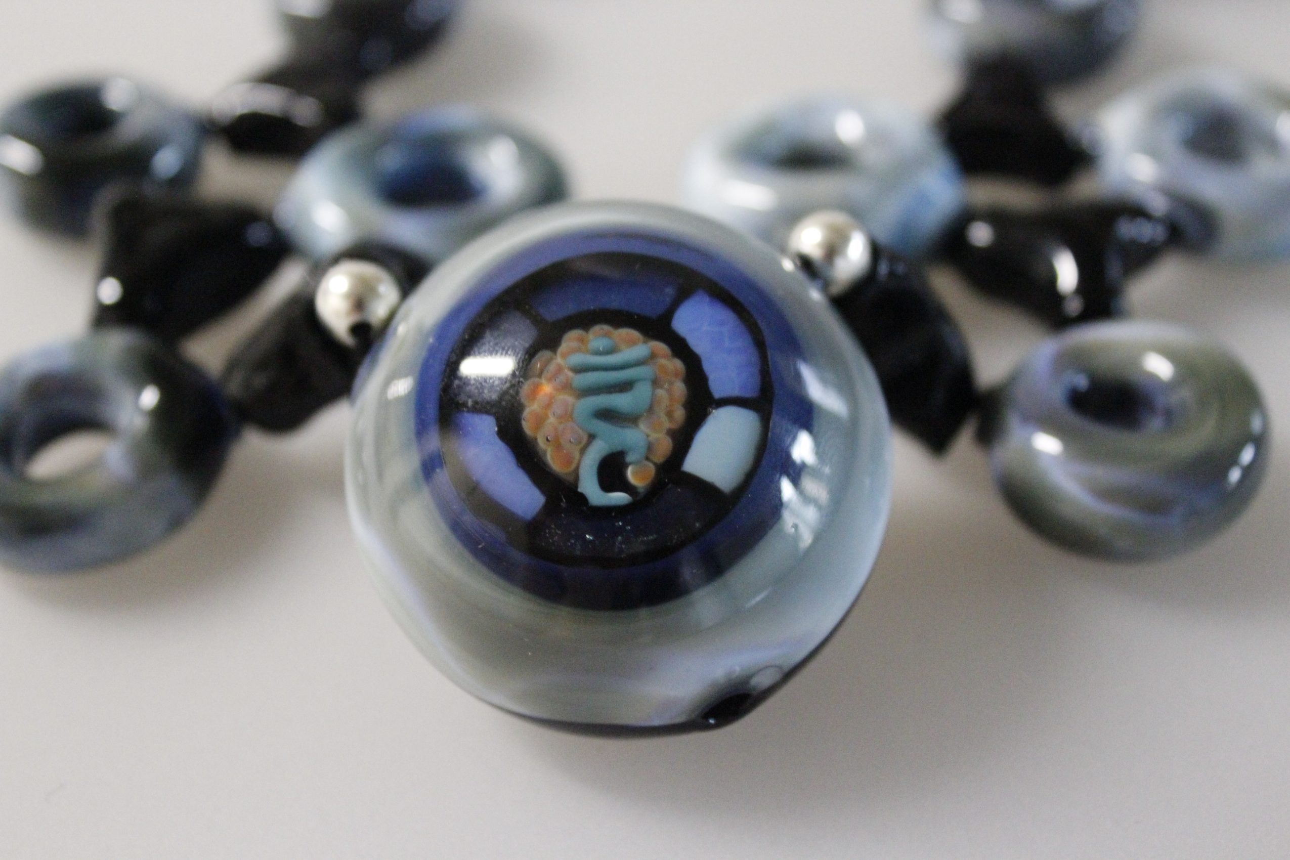 I am a glassblower. I typically practice flameworking, which is a technique using a torch to heat glass rods and tubes to 4,000+ degrees F, which I will blow and shape into jewelry, ornaments, and sculpture. I am also trained in traditional furnace glassblowing, glass casting, and glass slumping/fusing techniques. In addition to creating glass art, I also teach classes in my studio. I have also taught and assisted flameworking classes at the Corning Museum of Glass in Corning, NY.