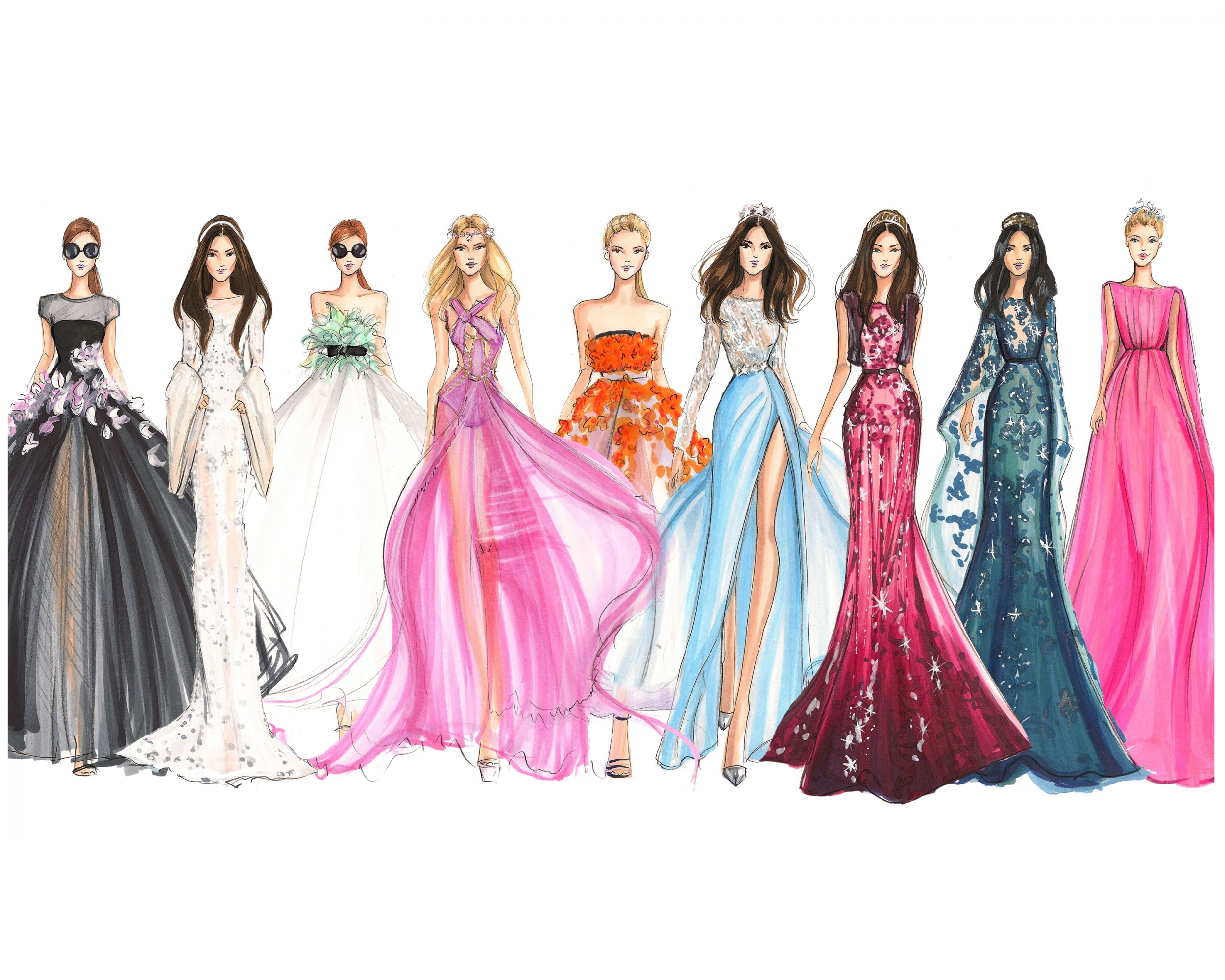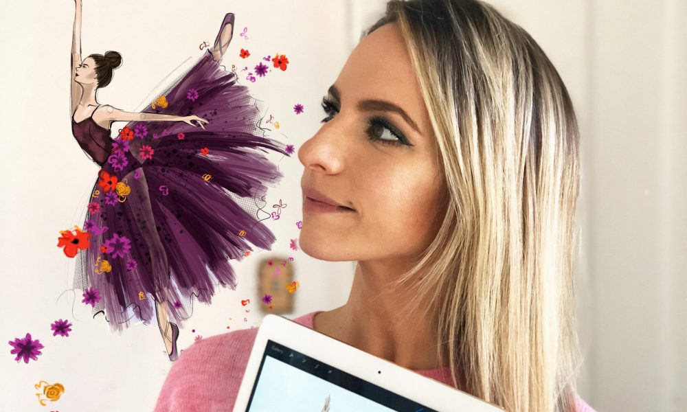 I sketch whimsical fashion illustrations. I use Copic Markers (alcohol-based illustration markers) as well as the app Procreate on the iPad Pro. I want people (mostly women) to be able to identify with the fashion forward characters I create. My work is a mix of “couture” style but a good portion of it also captures “every day”. I have a lot of illustrations of girls just relaxing drinking coffee in sweat pants, and some of girls with six-inch heels on.