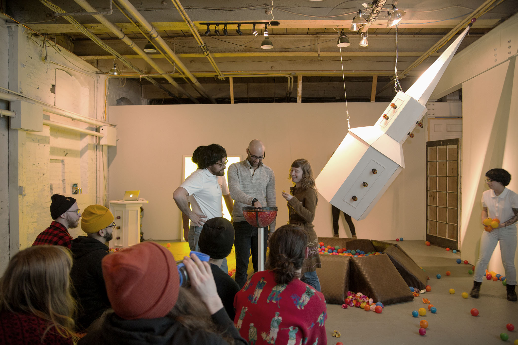 I make large scale multimedia installation/performative work. My work is informed by the exploration of the absurdities found in the world around me. Themes in my work have been, but not limited to genetically modified foods, natural and man-made disasters, religious practices, and professional wrestling. I use humor in my work to draw in the viewer. Upon entering the work, the viewer is invited to explore/experience the deeper meanings that inform it. I hope to create a unique experience that will resonate with the viewer beyond the initial experience.