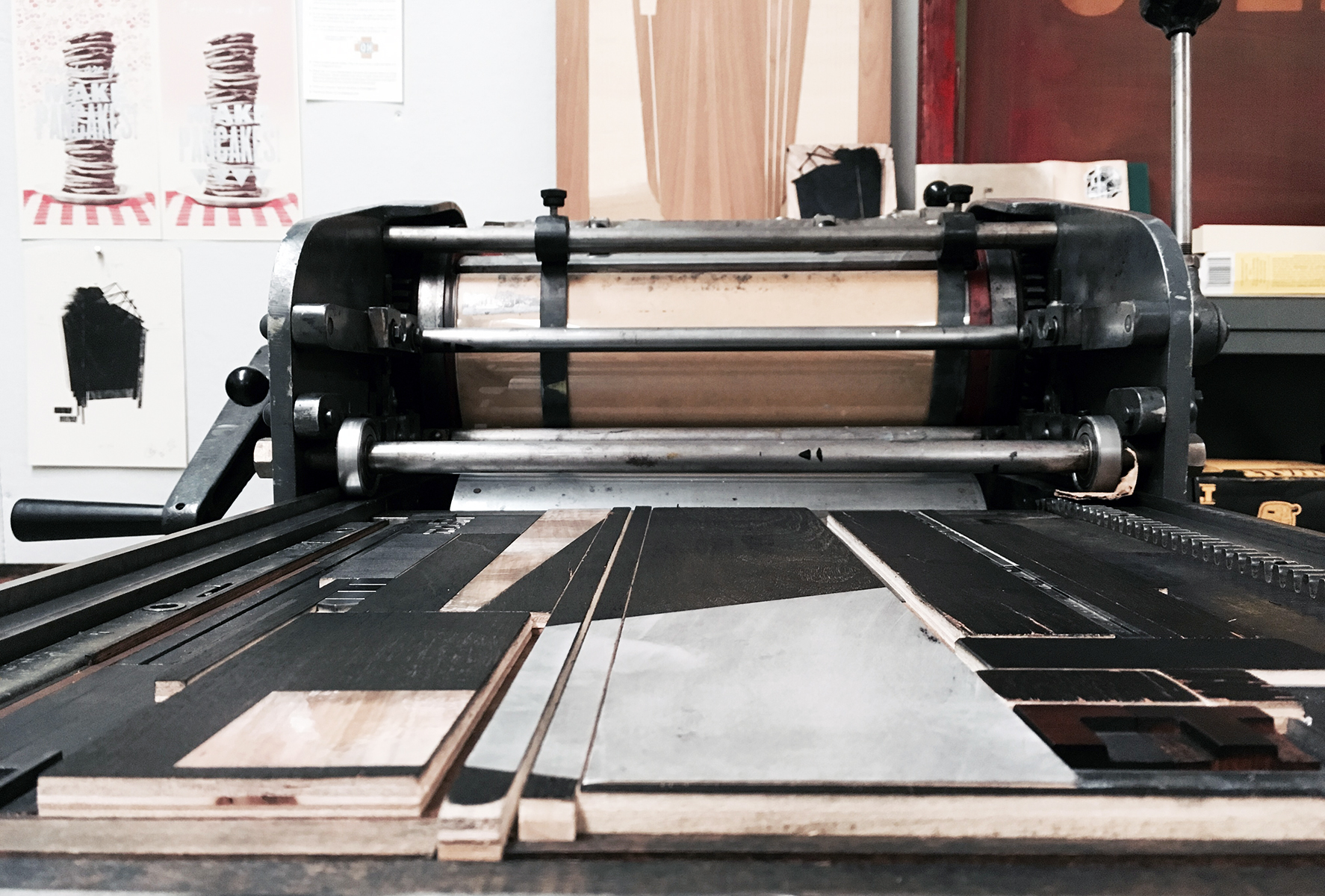 Along the way, I began accumulating tons (literally) of printing equipment and launched my printshop, Directangle Press, out of my OU grad studio in 2014.