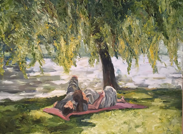 I paint and draw using a variety tools, mediums and styles. I especially like painting oil impasto pieces using only a palette knife. I love using color and the feeling and texture impasto paintings have. They take on a life of their own and are absolutely the most fun and rewarding pieces to do. Usually when I paint using this technique, I’m working from life outside or referencing photos of the outdoors, and they are almost always on large canvases.