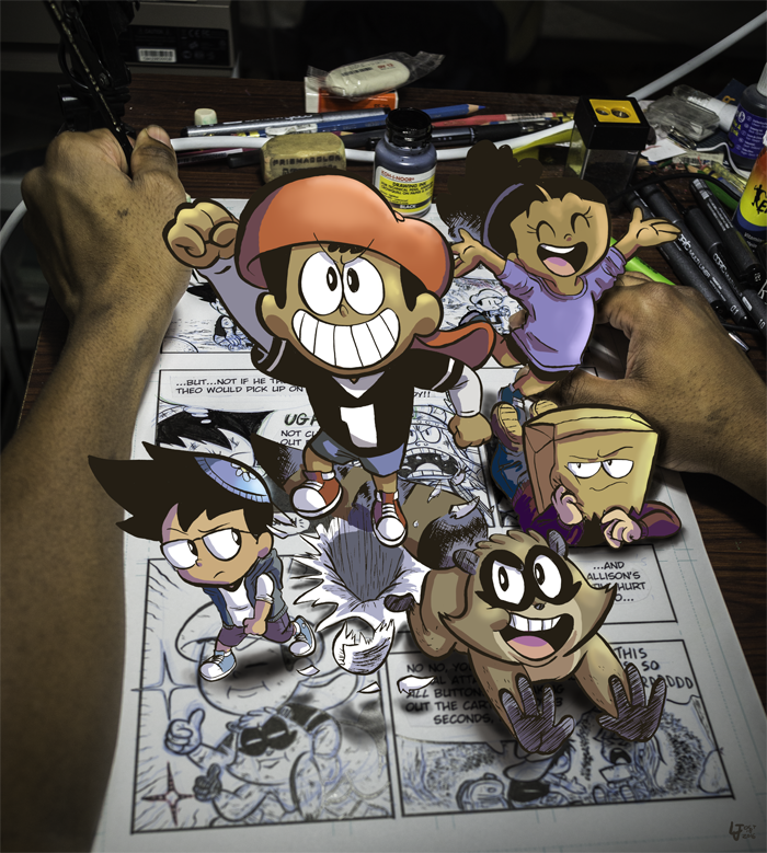 And one of the things it exposed me to was the debate on “high” vs. “low” art. My comic series COMIXSCAPE centers around the exploits of a 12-year-old boy and his raccoon sidekick. The inspiration is purely youth and the process of growing out of it gradually. One thing I’d say to know about my artwork and COMIXSCAPE, in particular, is that it exists to serve as something that fulfills a void of representation that I didn’t get to see for myself in popular media at all growing up.