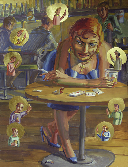 Recent paintings are based on research gathered during my travels, the transformation myths of Ovid, sainthood, the cult of the Virgin and current events (Columbine, the homeless, #metoo). I keep an ongoing series of sketchbooks full of gouache and gold leaf studies after the ‘old masters’. Standing in front of the actual painting, tracing the steps an artist has traveled, is my way of owning the painting and the closest thing to having a conversation with a dead artist.