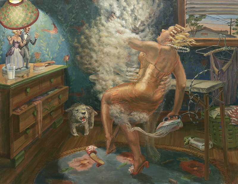My first personal assessment was in the fourth grade: “There is no magic in my mark!” Early on I knew my painting would be about ideas, the paint would tag along. My work follows in the tradition of history and narrative painting documenting current and fictitious events using myth and allegory. The human condition, modern day romance and political issues are often explored. Voyeurism, a longing to ‘be someplace else’, and a sense of places and events remembered are recurring themes. Humor is the catalyst and a bridge to darker, more troubling issues. In my youth I wanted to make paintings people would gag and cry in front of until I saw two women doubled-up laughing in front of my work. Joyce Kozloff commented at my PS1 show in New York, “God, lulu, your work is so American!” I can live with that.