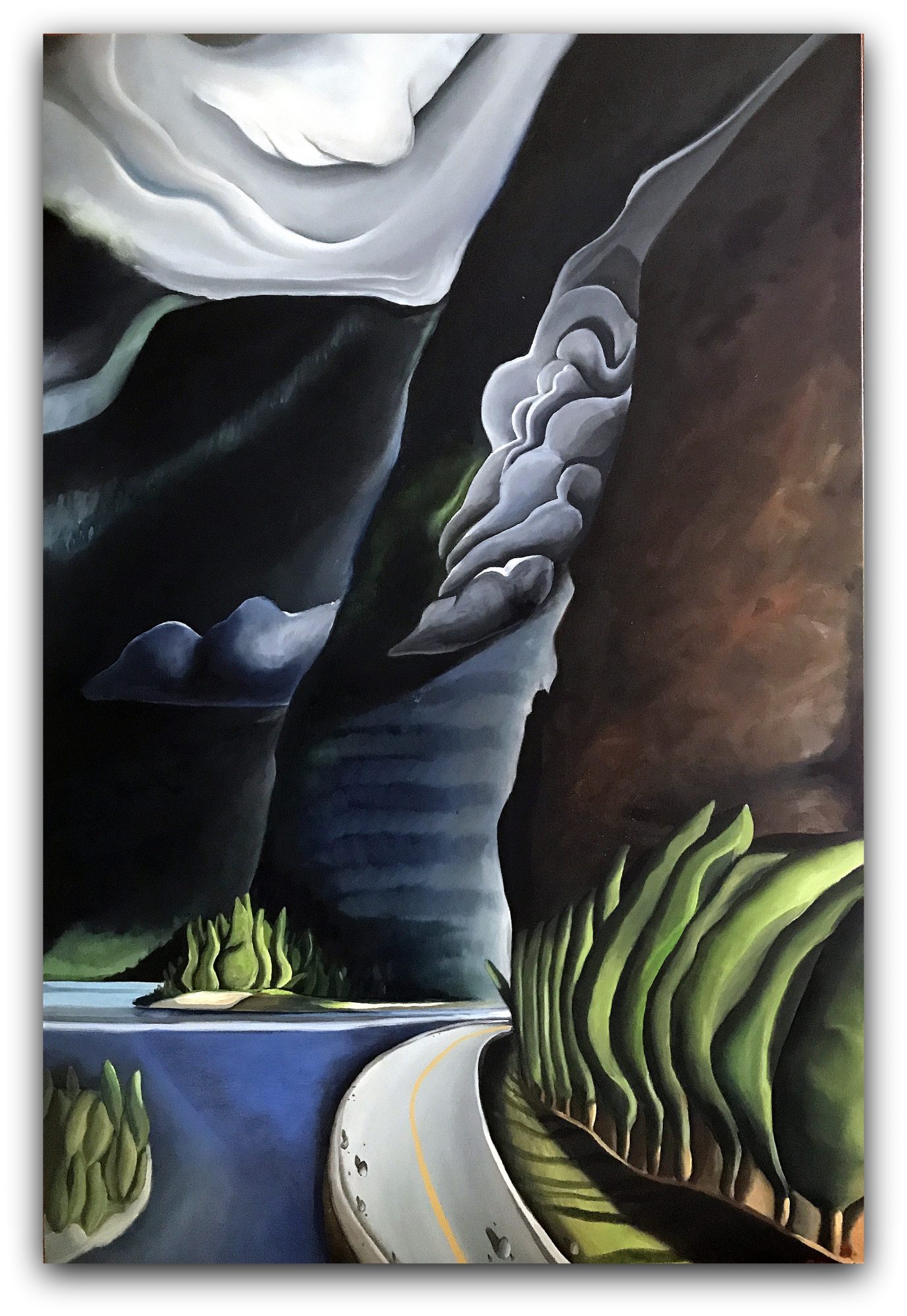 The Pacific North West encompasses both ocean and mountain vistas, and possesses a unique and spectacular beauty that is forever informing and inspiring my art. I love to go hiking and camping, and always take pictures wherever I go. There is a certain ‘peaceful spirituality’ one gets in these endeavors. That feeling of awe-struck beauty and solace deeply informs my art, and is part of the intended message I hope others will find in my paintings.