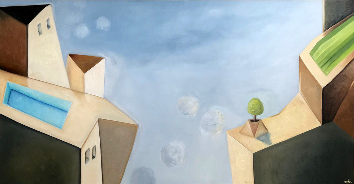 I paint using either acrylics or oils. Acrylics dry fairly quickly, and thus require a faster pace, and also produce a certain treatment of texture and color manipulation that’s quite different from oil paints. I first began painting with acrylics as my medium of choice, and all of my early work was done in that medium. But later I discovered the subtlety of color and shading that only oil paints afford. My most recent work has been created using oil-based paints. I continue to enjoy exploring new ideas in both mediums.