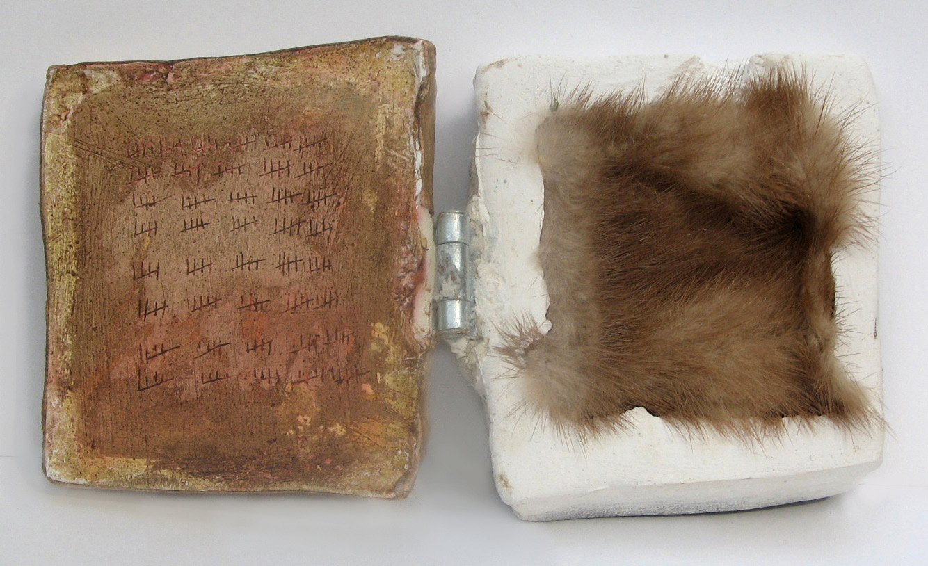After experimenting with many materials and ways of working, I found the most success with making artist’s books and prints. I have discovered I like everything about the process of making books: the materials, which can include anything from plaster to bottle caps; the scale (hand-held and intimate); the use of narrative in the turning of pages and the illustrations; the sense that one object can connect people. I wrote and illustrated my first book at six: “The Magic Rose, It grows and grows, they tried and tried, but they couldn’t cut it down, He died on it.” (I went to Catholic school.)