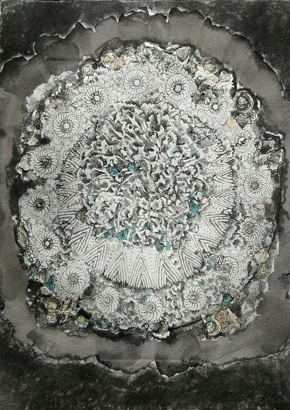 As difficult as it was, I enjoyed working in metal, but the idea of making personal adornment with precious metals was limiting for me. I transferred the techniques I was already using, such as etching and roller printing and applied them in book and print formats. Each printmaking method offered me a new set of challenges and possibilities in line, texture, and light and shadow. There is something rewarding about the physicality of carving a line, mixing different colors of ink, and the challenging process of layering imagery to build a composite image.