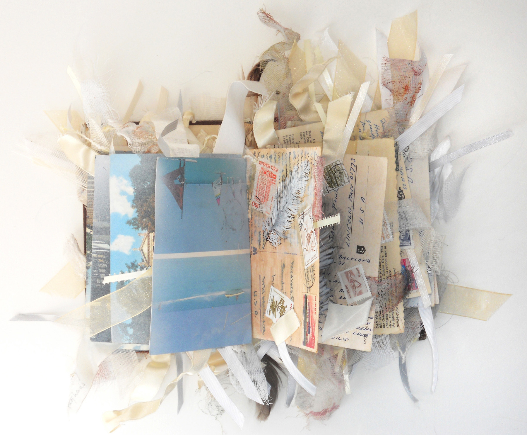 During the summers of 2012 and 2013, I traveled to Poland with Handshouse Studios of Norwell, MA where I served as faculty on a project to recreate a 17th century wooden synagogue using traditional techniques. This exhibit is now on display at Polin, the Museum of the History of Polish Jews in Warsaw. I contributed three artist’s books to Al-Mutanabbi Street Starts Here. I repurposed my collection of old family postcards, painted and printed on them and stitched them together with feathers, stamps and ribbons. I served as the East Coast Coordinator for the next phase of the project, organizing 60 printmakers to contribute to Absence and Presence. Both of these projects asked artists to respond to the bombing of the literary district in Baghdad, Iraq. These prints and books continue to be exhibited nationally and internationally.