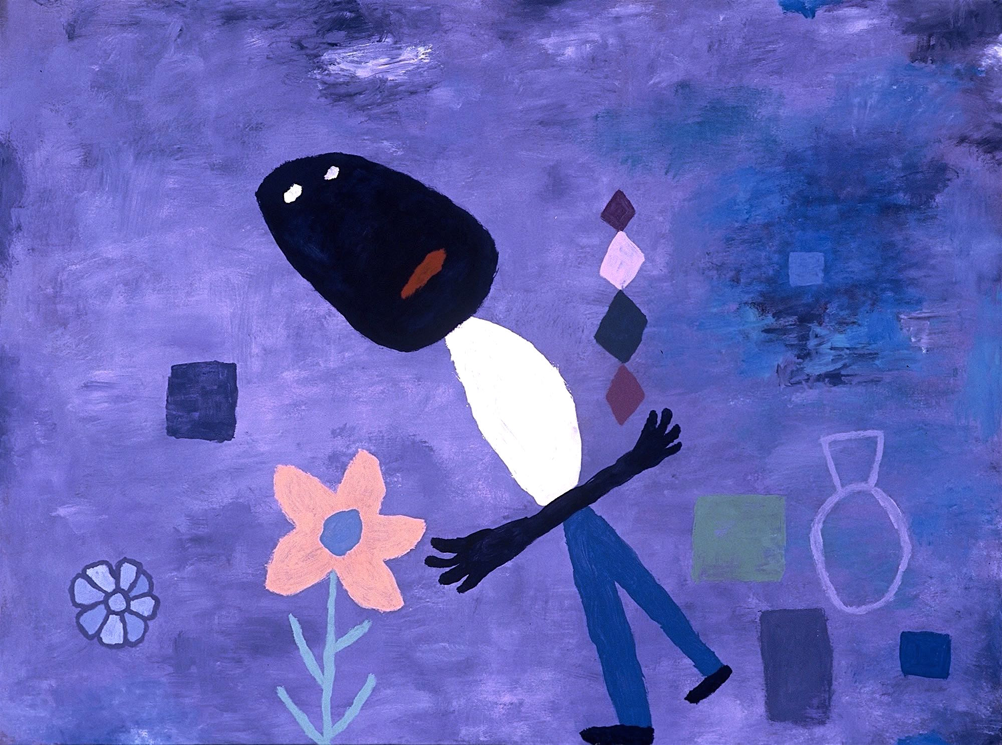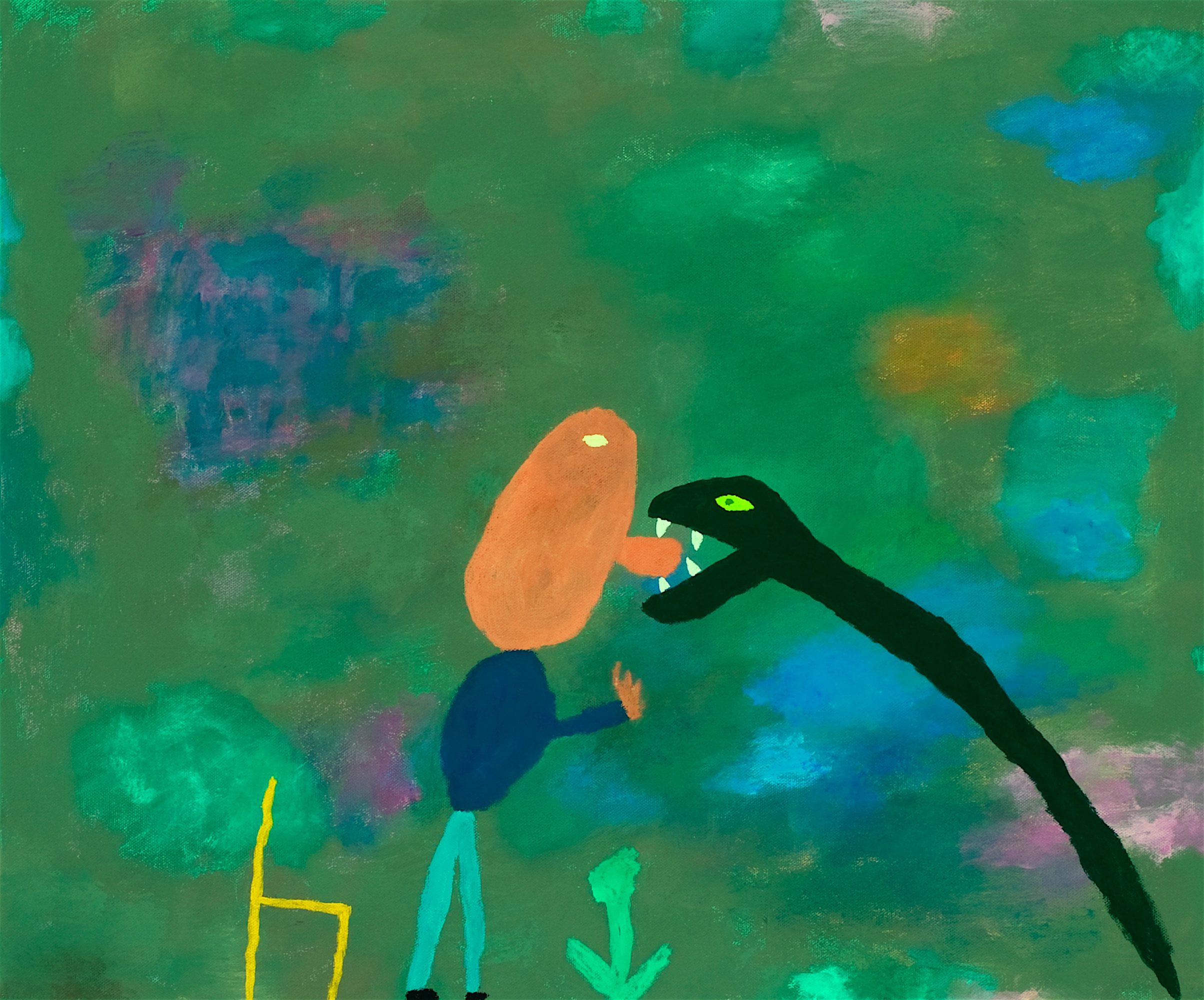 The work looks, I hope, spontaneous. However, it’s not easy being simple; that’s where the drawing comes in. The drawings are made with pen or pencil on cheap paper and function as visual notes to myself, notes that can be altered as I move from idea to execution. Because I also make sculpture and prints, the ideas and images used in those other mediums find their way, inevitably, into the paintings. Travel influences my work, too; places I’ve been, people I’ve met, meals that I’ve eaten, all may appear in the paintings.