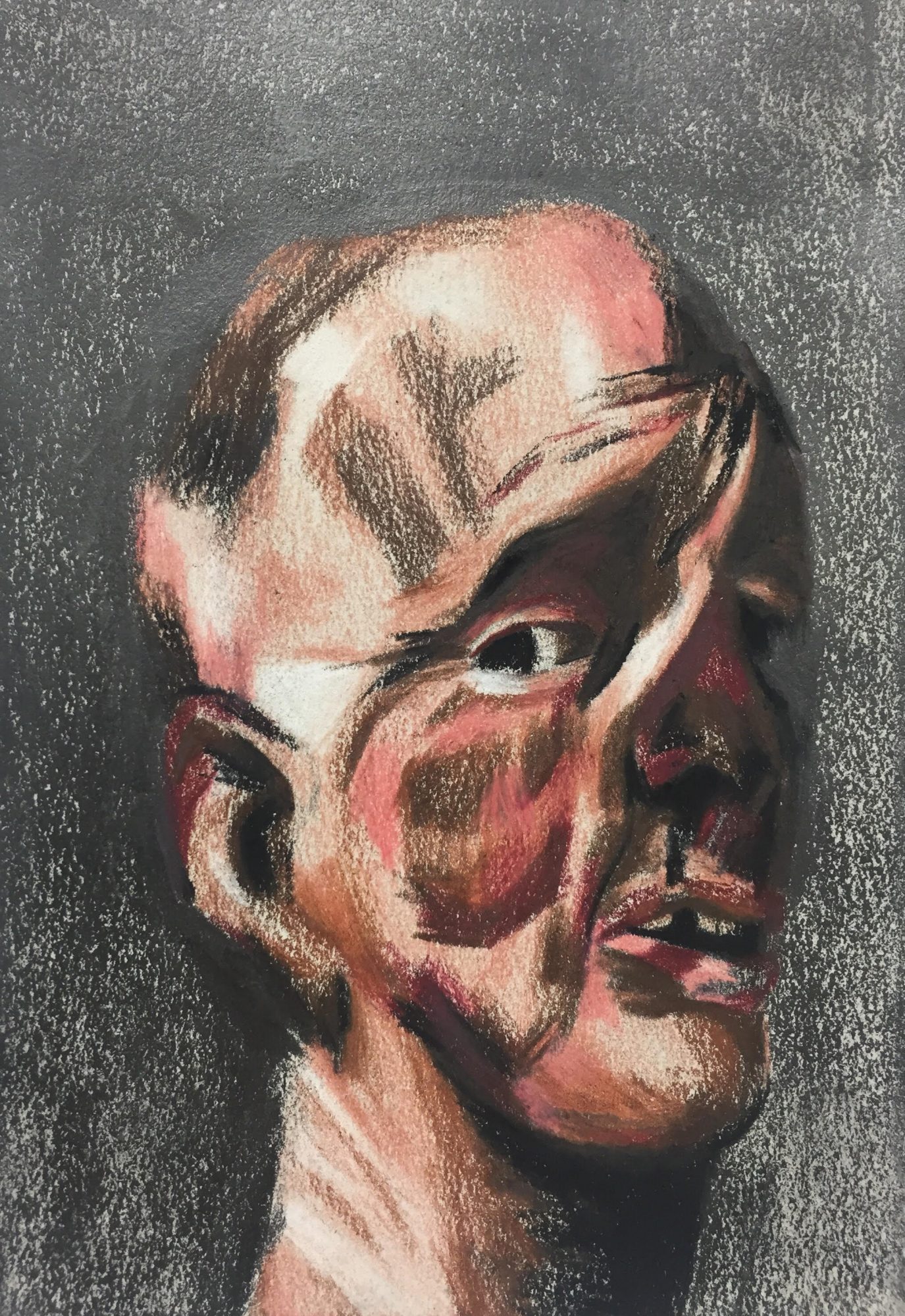 I view my work as a play between abstraction and representation presently revolving around the idea of the psychological portrait. I represent human faces through the process of manipulation and transmutation in order to alter peoples’ perceptions of what a face is “supposed” to look like. By utilizing the face as a carrier of marks, whether it be paint or pencil, I attempt to communicate emotion through those marks.