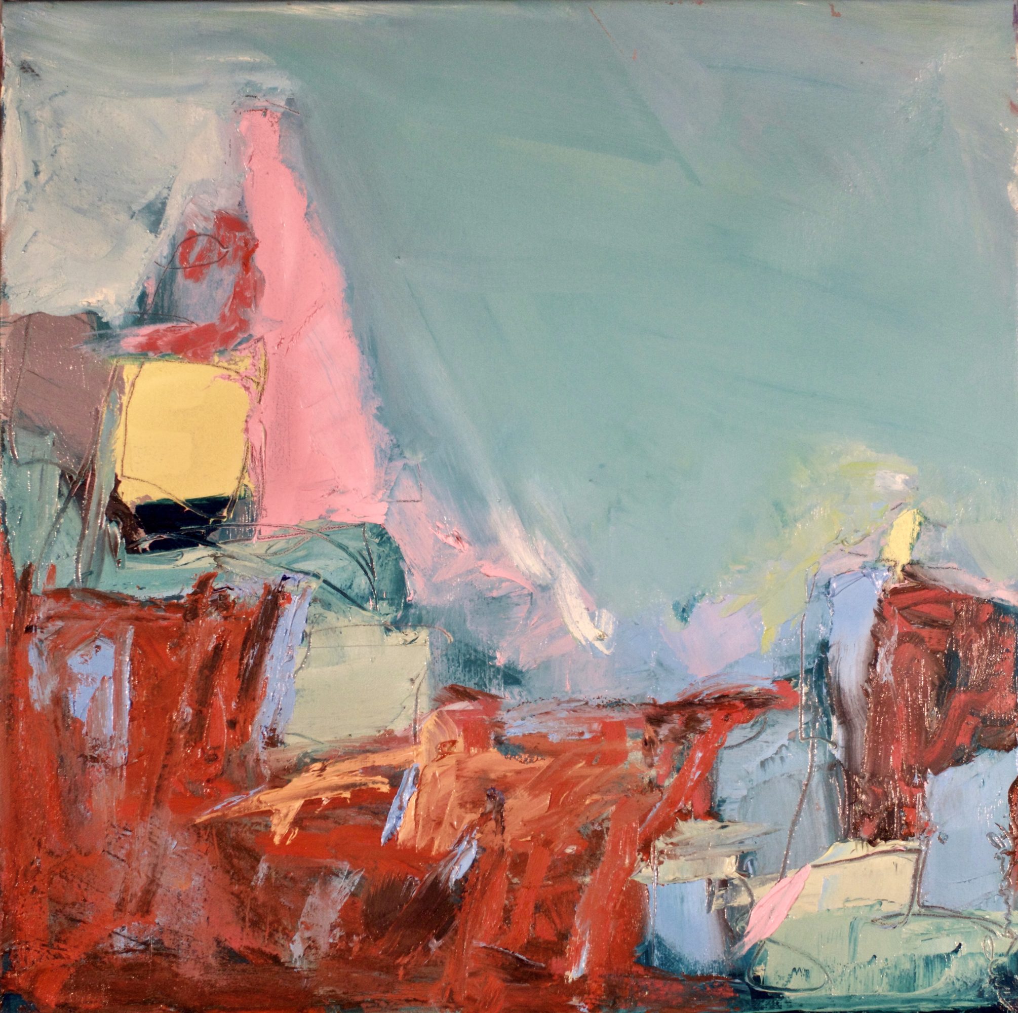 I love oil paints, I love square canvases, I love pushing boundaries, I love creating peace amongst chaos, I love having a binding chord twirl, encircle and gesturally free as it travels through the canvas.My message is to forge through to find one’s own voice and hold on to one’s integrity in a creative process
