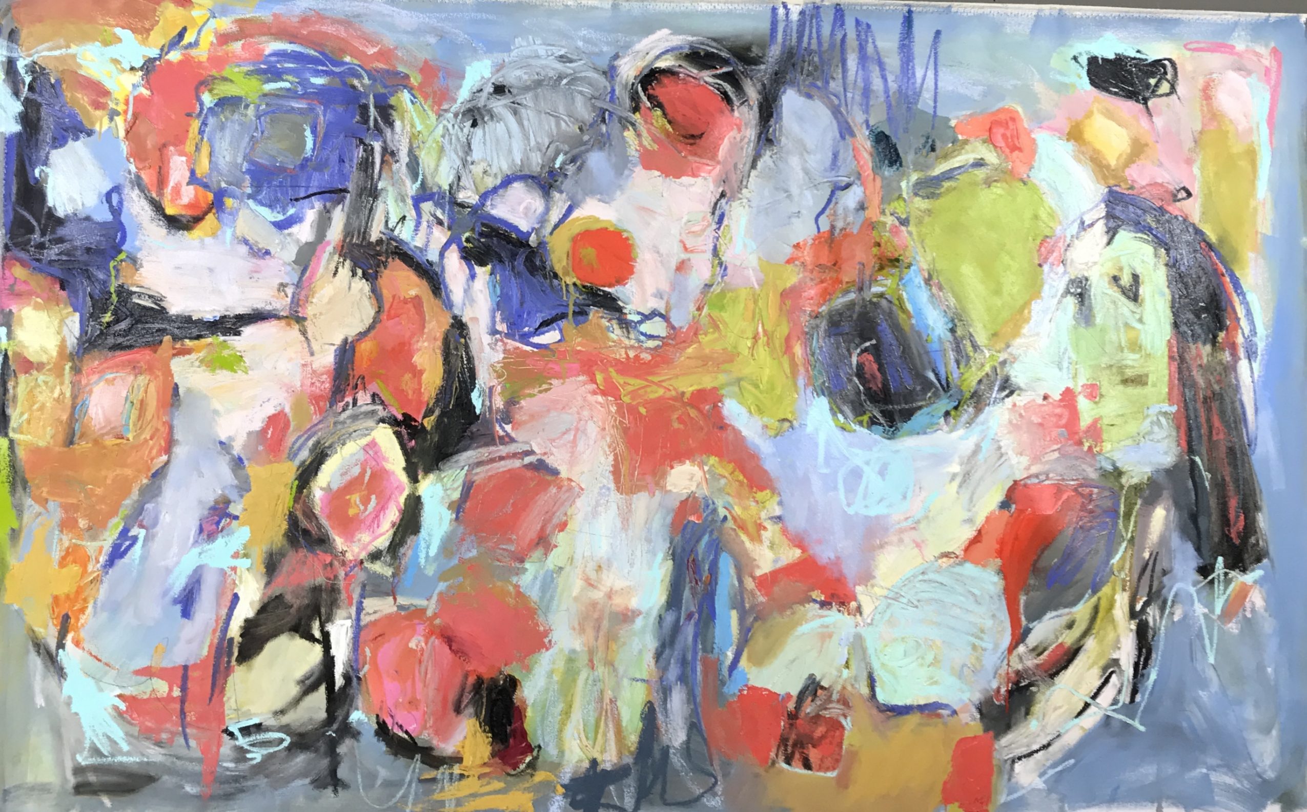 As I begin to stretch my canvas a relationship develops beginning my process. Building a foundation, gesturally marking with my favorite pencil on to the canvas and committing to the journey. I gravitate to color, then another, and another. Things begin to evolve, I love the push, pull of creating,
