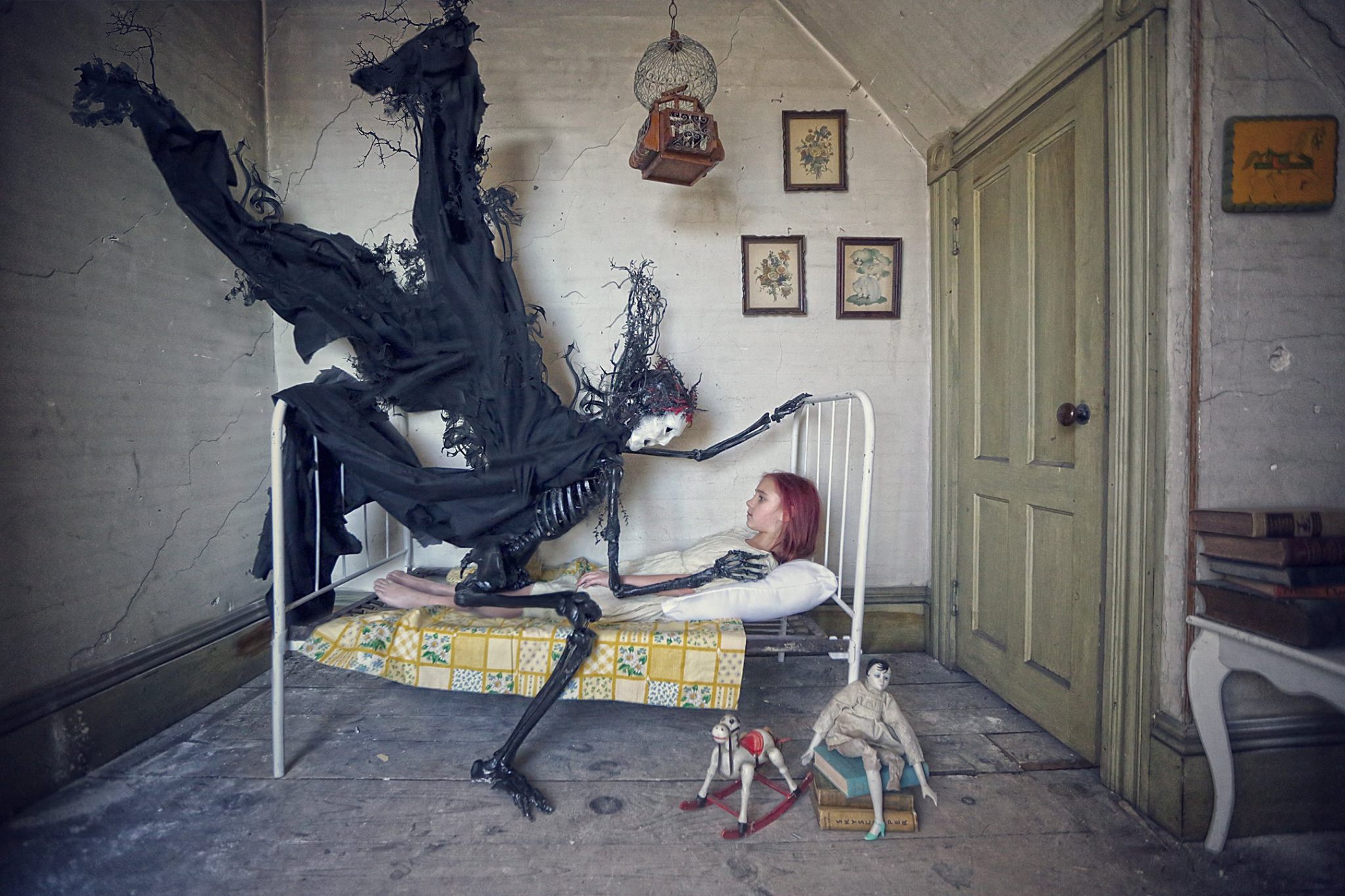 I took some theater classes in high school and kept up with the videography. By the time I went to college, I was expressing interest in manipulating images digitally. In 2003 when my parents gifted me with my first digital camera for graduation (a whopping 3 megapixels). I had never been much into photography growing up but suddenly I loved it. From 2003 until around 2010 my passion was concert photography. There was nothing like the feeling of getting a photo pass and the rush of shooting a live band. It gave me a purpose. I felt like I belonged. But something was still missing. There was some sort of insatiable desire deep inside me that wasn’t being filled. Around 2009, a friend had suggested that I tried shooting models. “What?!?!” I asked. “That’s cheesy. No”. But I did. I started shooting models. Really, really terrible photos of models. I had no concepts, no decent wardrobe, no decent ideas and no cool places to shoot. I also didn’t have a studio, and never in this lifetime could afford my own, so I desperately searched for interesting locations. That’s when I came across a photo of a theater that was in an abandoned asylum in CT. Up until that point, I had absolutely no clue that places like that existed. The dystopian world sort of just wormed its way into my work and never really left.