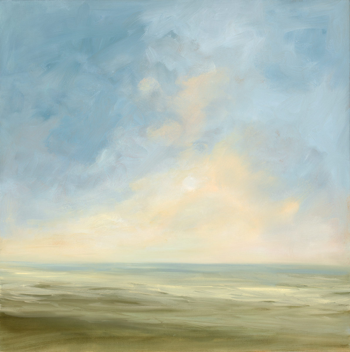The work that I do is all about feeling. My paintings are a way for me to communicate the subtlest nuances of my experiences, by translating them into a visual context.  I paint a lot of water and marshes.  I love the clouds, and they have a place in all of my work.  The sea, gentle waves, blue skies, it’s everything that makes this earth so gorgeous.  I draw upon landscapes from Cape Cod, Western Massachusetts, and the Caribbean, as well as my childhood years in the rolling hills of New Jersey. The natural beauty and serenity of these places is embedded into my paintings and I express my experiences of them through brush strokes and color.  I have heard others describe it as a breath of fresh air, peaceful, ethereal, uplifting and relaxingly beautiful. My painting comes directly from my experiences and it is always emotional.  For me, creating the painting is a meditation and that is exactly what I hope the viewer will find too. I hope that others can spend a minute or two in the space I have created for them and destress.