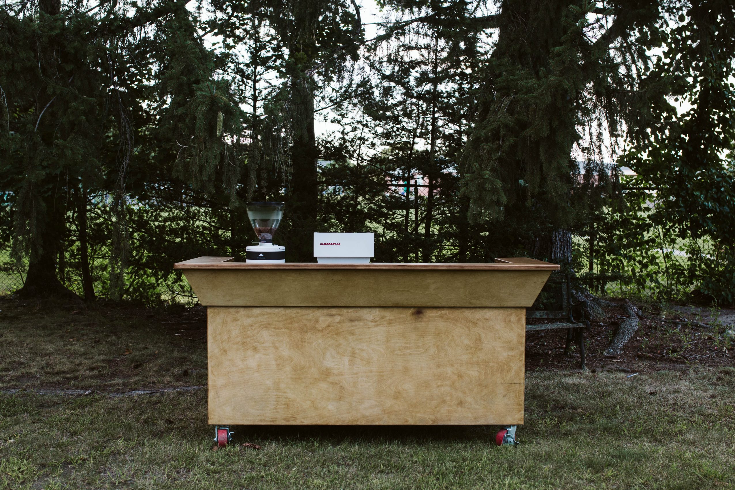 Our cart is a fully operating coffee shop in the footprint of a 7-foot bar. We are capable of making the same drinks that you find in your favorite cafe but we could be standing in the first floor of your office building, your backyard wedding reception, or the middle of your favorite park.