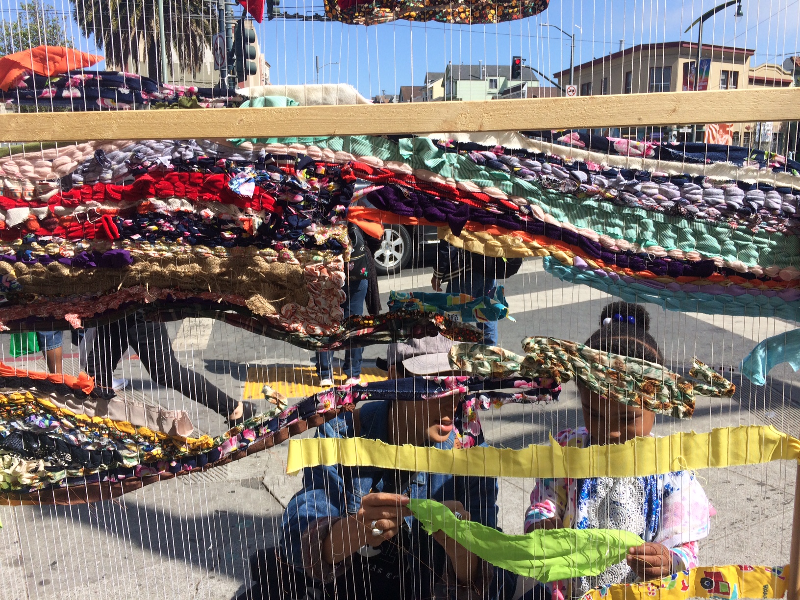 My current collaboration with Open Windows Cooperative, features a traveling loom in the nearby Bayview Neighborhood. For the past few months, we’ve been wheeling the loom to invite passerby to weave strips of donated fabric together. The project has been a great way to start conversations, and get to know people who have a long history with the neighborhood. It’s the kind faces and fleeting exchanges that make up the woven tapestry.