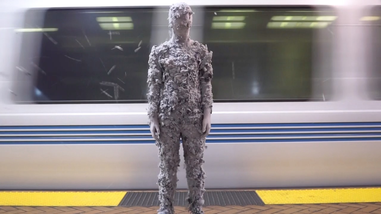 A lot of my work is made out of materials in state of change. This could be ice that dissolves, a piece of lint that has formed in a dryer, or a textile made to unravel. I’m exploring ways that art can be about actions. In a few performances, I break out of these materials, or shed them with my body. I’ve also created interactive sculptures for people to pull apart. The fun part is seeing how these pieces will change based on factors that I can’t control, such as people’s reactions or elements in the surrounding environments.