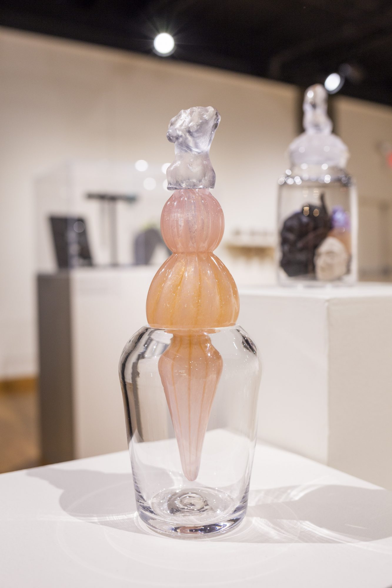 Designing works that invite the audience to have tactile engagement is one of her particular interest. She uses texture and form to evoke the audience’s familiarity with previous encounters. In order to achieve this, Momoko has experimented with ceramics, hot sculpted glass, and blowing glass into a variety of molds. Her use of figures also invites the viewer to start developing a personal relationship with these sculptures. Some of the titles prompt fresh ideas, seemingly separate from the neat and elegant forms, but suggest Momoko’s connection with the work.