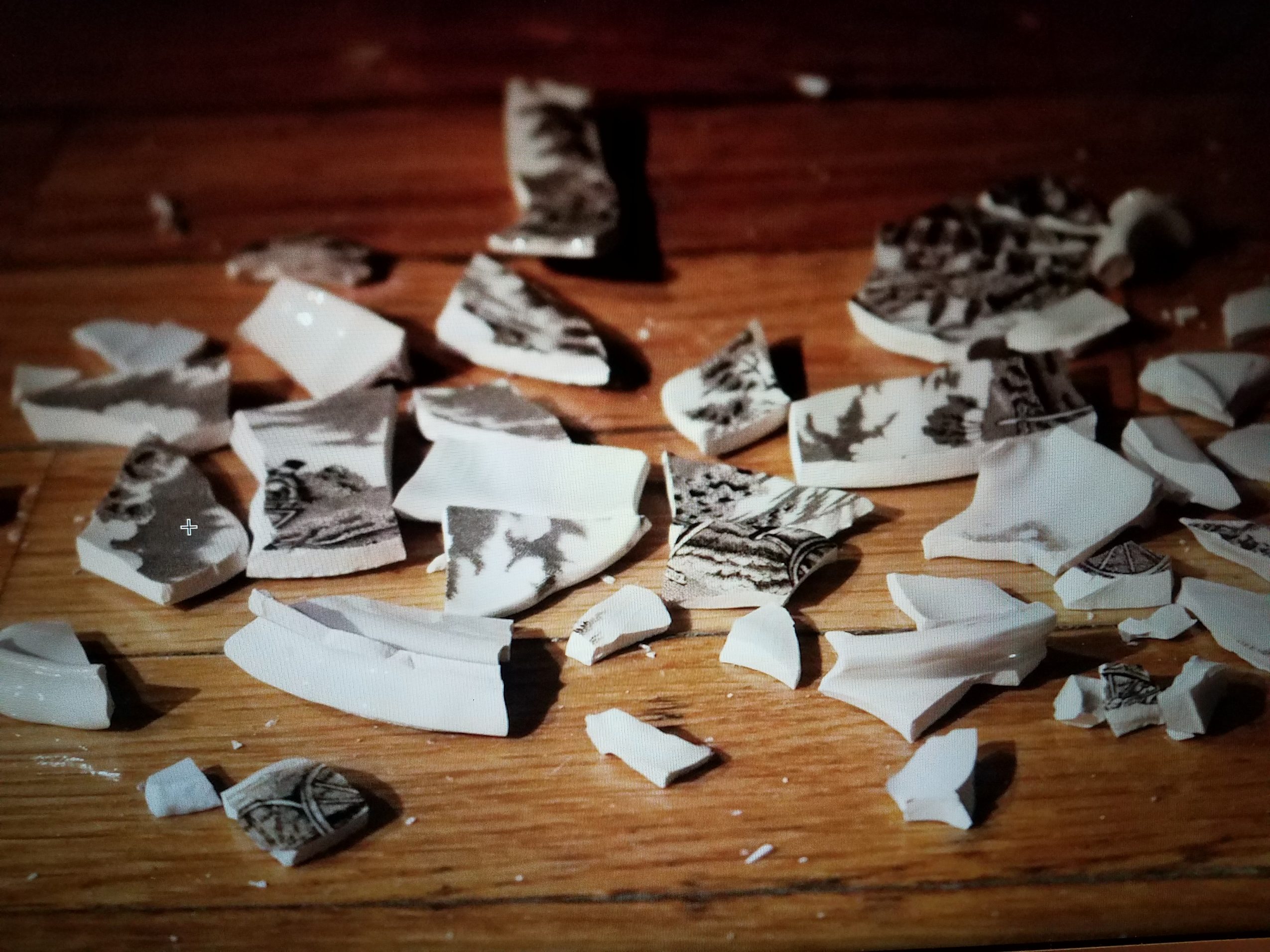 I expose the technology of the video components to offer a juxtaposition between the “white trash” tchotchkes found from my parent’ home and the array of wires and cables that literally tie the media together. In performance, I embrace characters inspired from my family upbringing, mostly of the bitter, crass mother, forcing the audience to break bone china and have them glue it back together, or the snarky tease of a server, never giving the audience a piece of delicious cake and watching helplessly be thrown into the trash. Overall, I hope that viewers find how their position in our culture either privileges them or subjugates them against the American Dream/Nightmare.