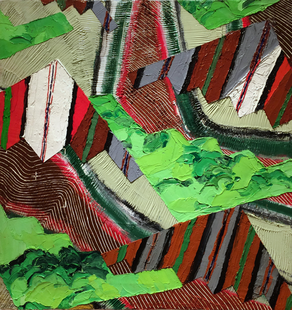 I make paintings, drawings, and prints. The imagery in my work is born as a collision of worlds. I use collage as a metaphor for the overlap of virtual and visceral parts of our daily life. I start a painting without knowing how it will end up… the discovery and challenge of the process are what I love about making art. My goal is for the viewer to discover connections across color, pattern, and space in the imagery in my work. I approach each piece like I am creating a look into a yet unknown world.