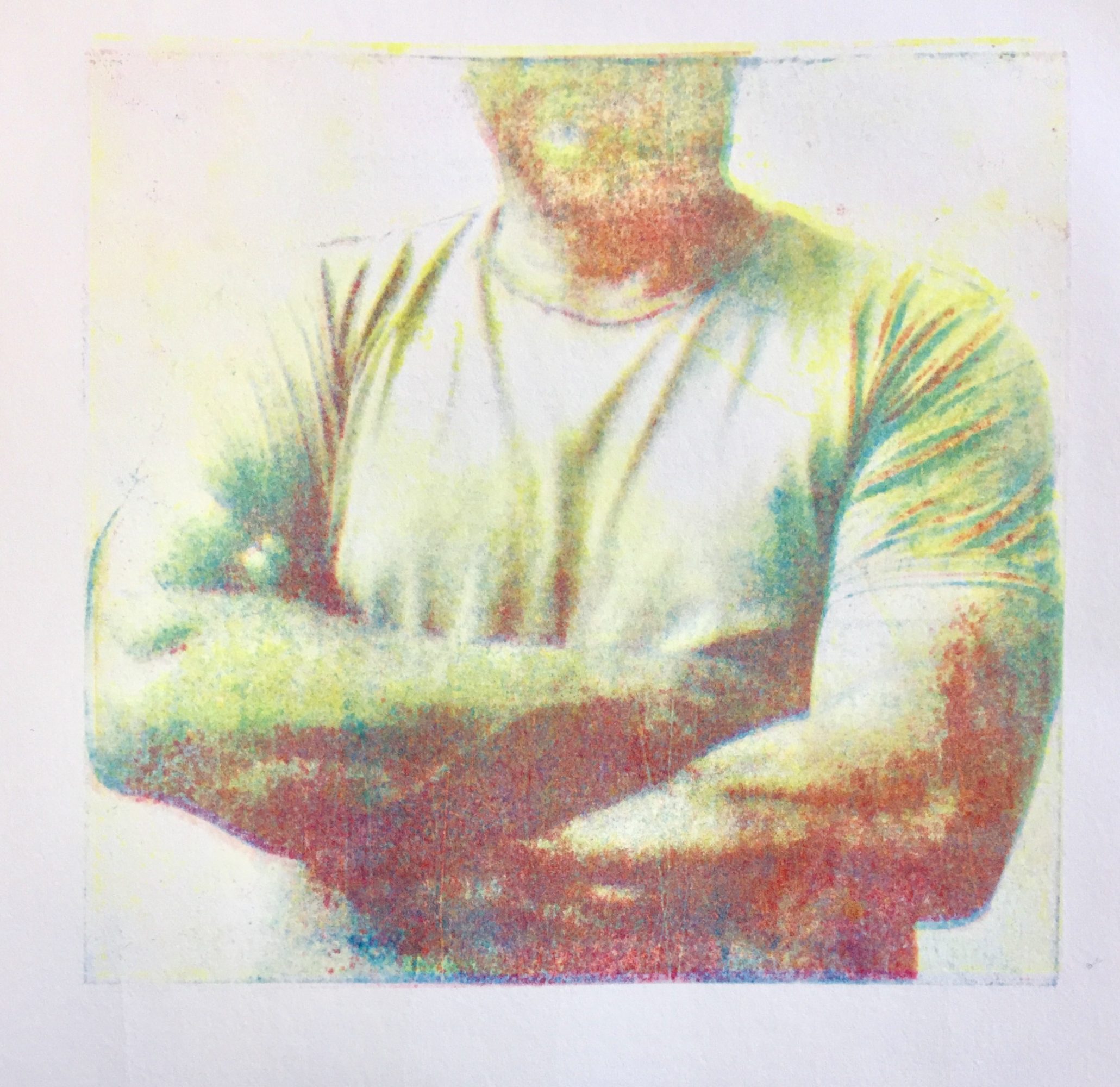 I am primarily a figurative painter, but I use different printmaking processes to support that work. I believe my work is about the human condition. My work explores my connection to the things that are happening in the world. Most of my favorite art is based on abstract expressionism, but my work tends to tell a story. I use the things that I see in abstraction to tell those stories. I think the work I do inspires stories in the minds of the viewers.