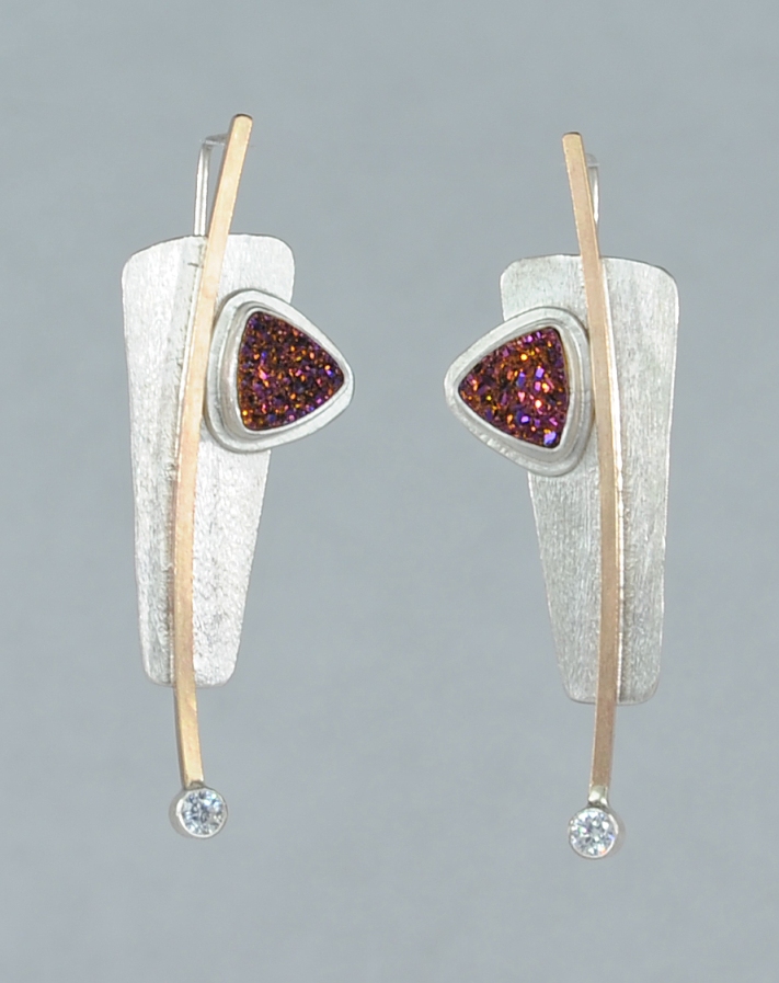 I make sterling silver and gemstone jewelry. My jewelry is an exploration of the infinite variety of shapes, colors, and textures found in the precious and semi-precious stones used in my designs. Much of my work is one-of-a-kind, so my customers always have the opportunity to choose a piece that is unique and special. I choose my stones carefully…I’m a huge rock hound!