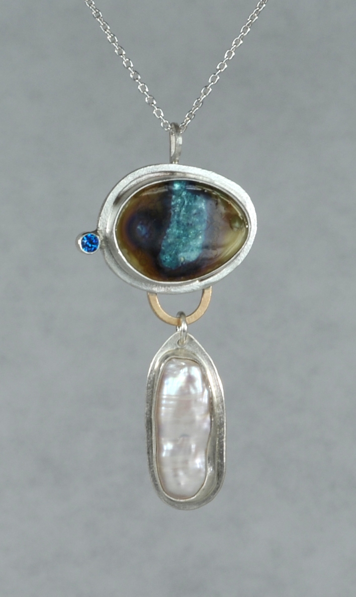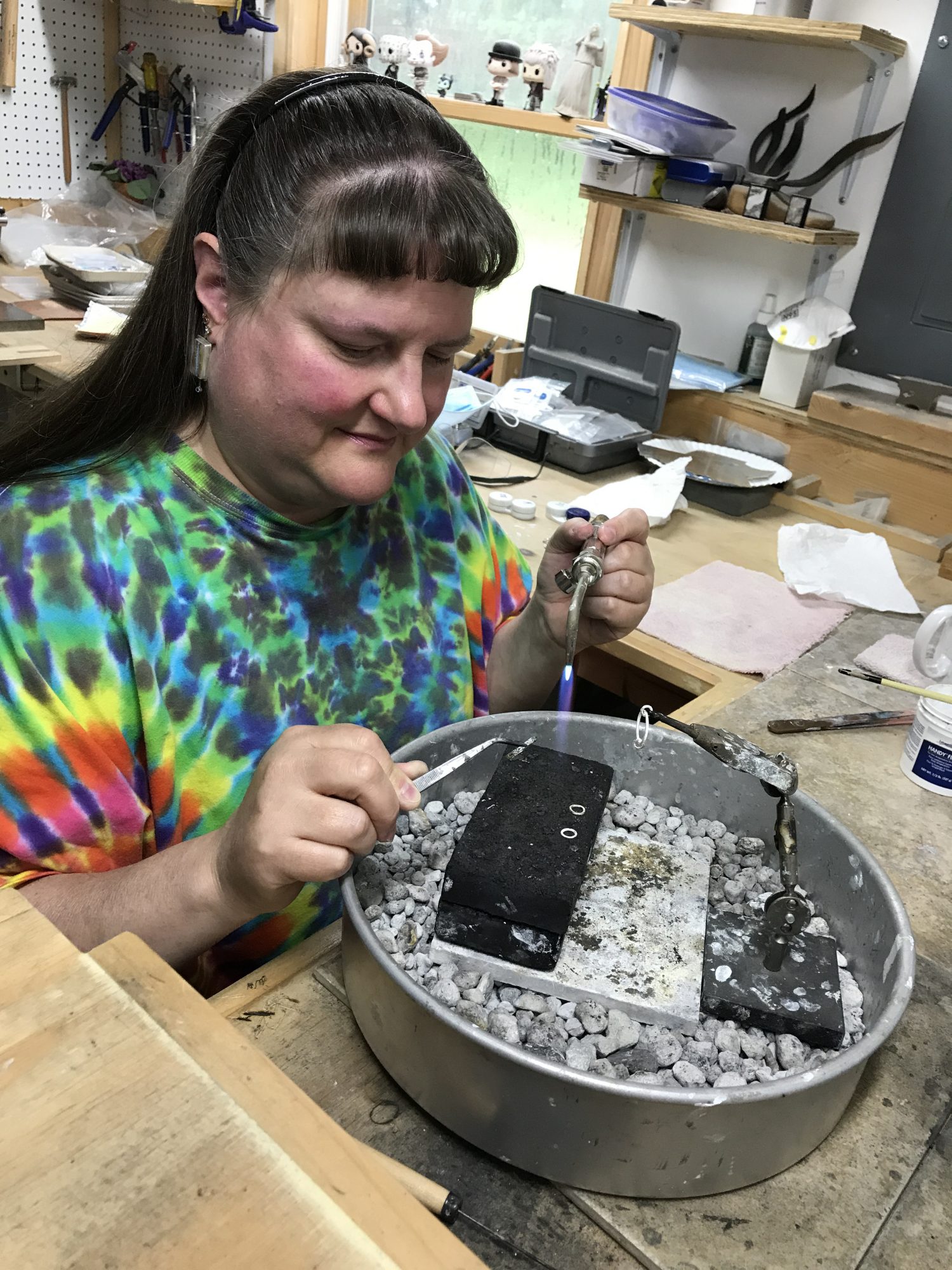I have been in love with jewelry since I could say “OOOOH, shiny!” I started with beading at the age of 10. Fast forward to 1983. I attended Hartwick College, met my future husband and earned a degree in Psychology. We moved to Mont Vernon, NH in 1996 and began the task of raising our wonderful son, Eric (had to get that plug in somewhere!). Several years later I joined the Mont Vernon Artisans where I met my friend and mentor, Karen Mitchell, a talented jeweler and juried member of the League of NH Craftsmen. Karen graciously shared her knowledge of metal work and created a monster. I juried into the League of NH Craftsmen in 2014 and am now working for myself as a full-time jeweler.