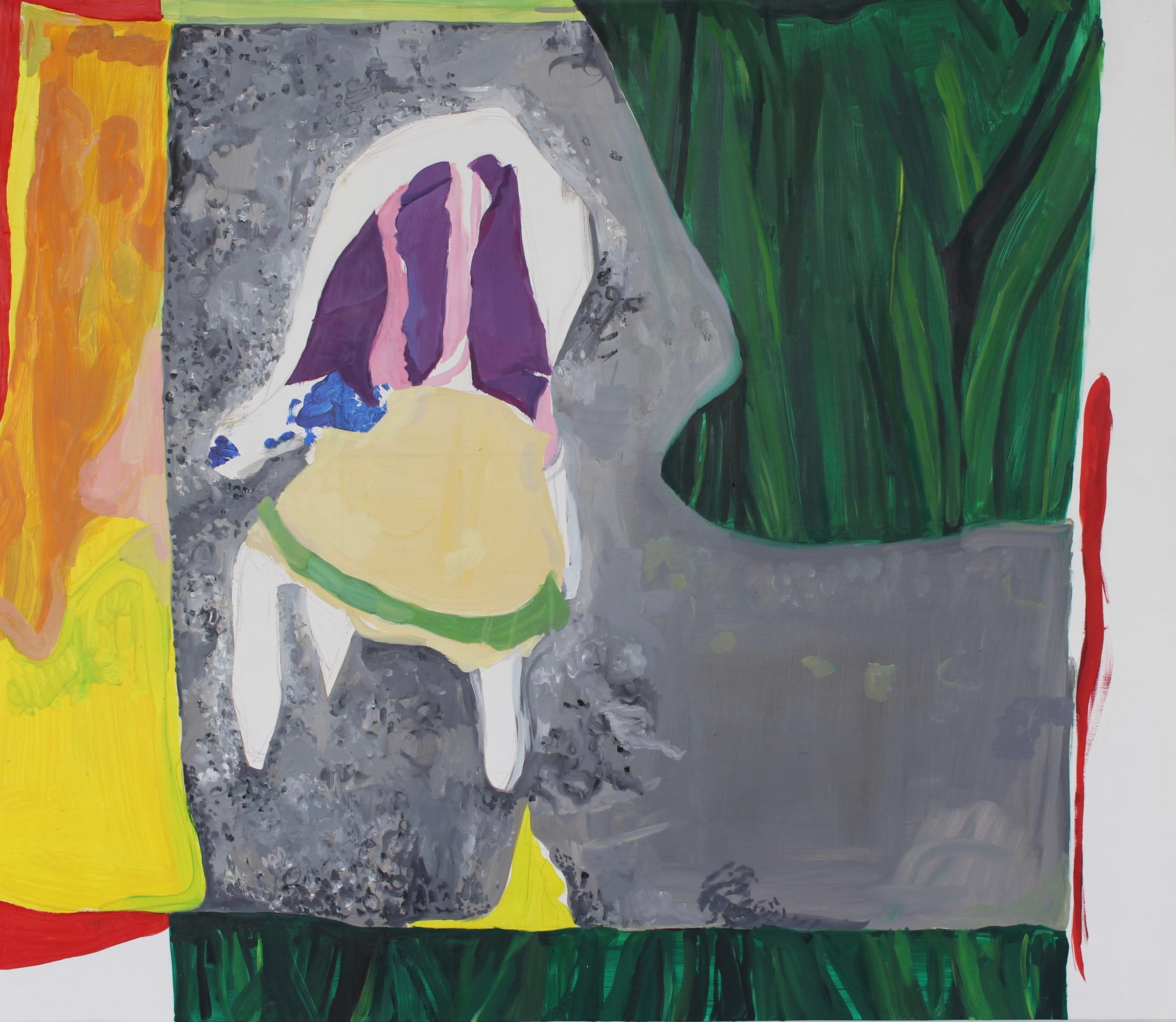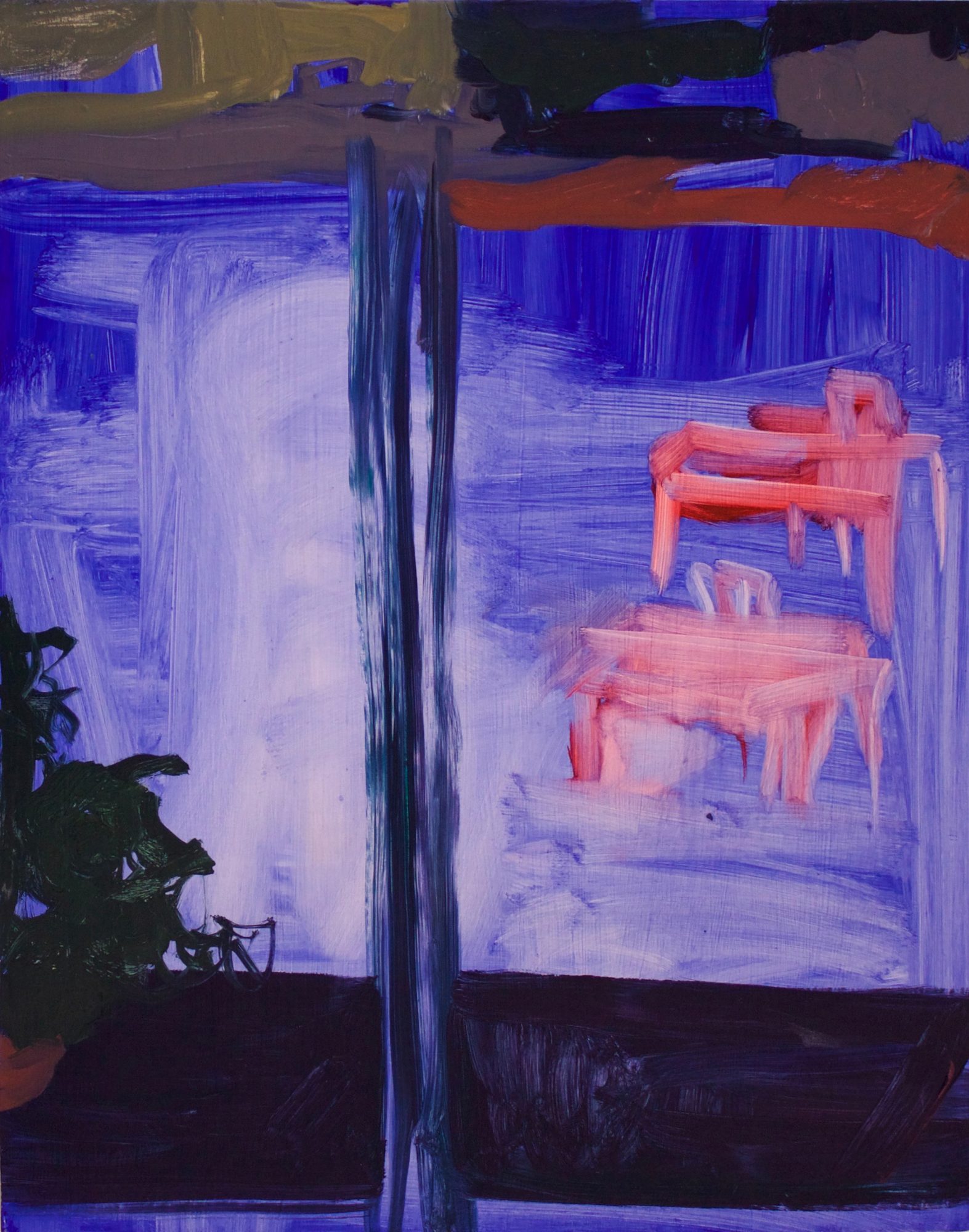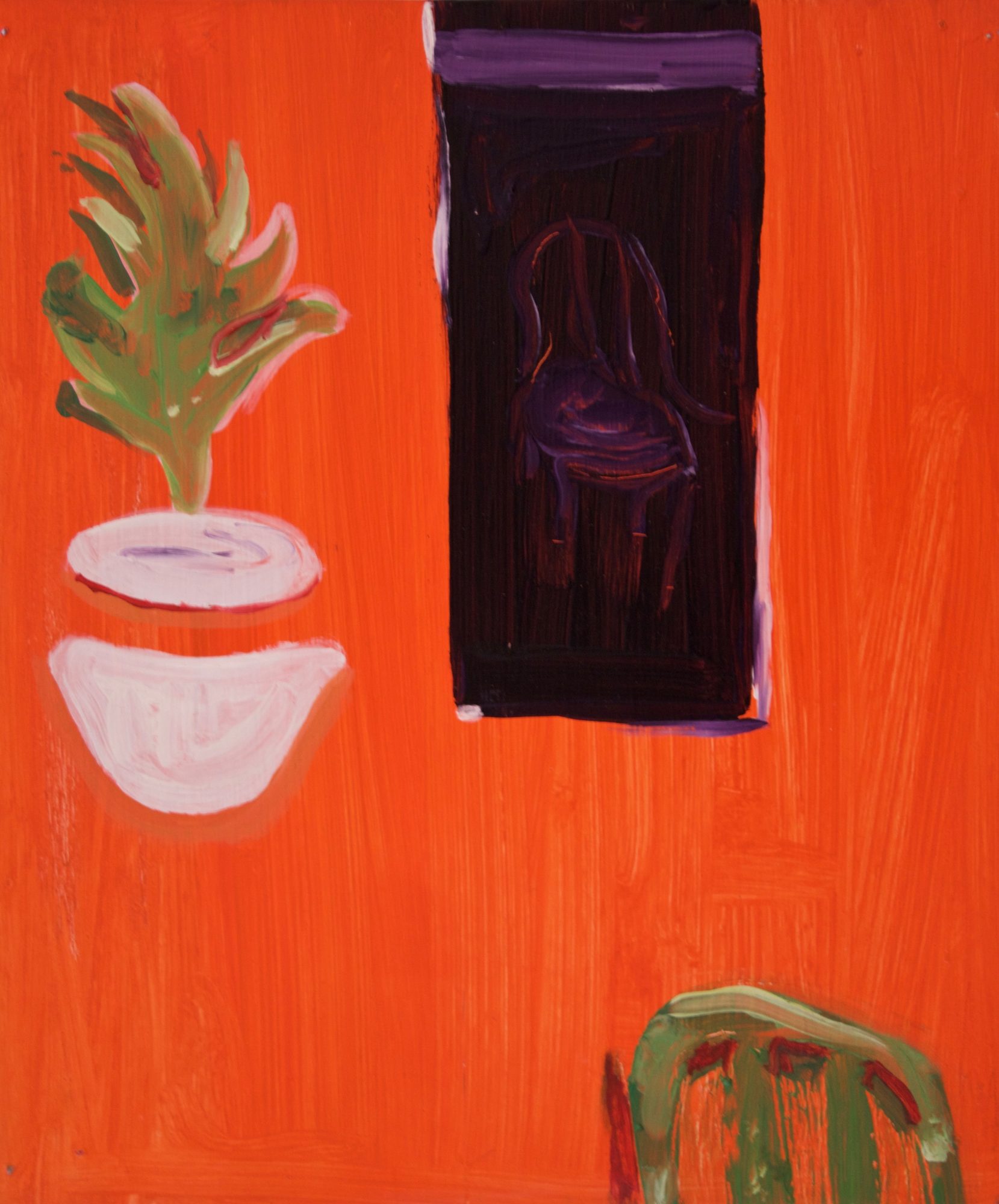 I rely on the presence of chairs, plants, and architecture to create a sense of location while inviting the viewer into this new space. My hope is to create a sense of push and pull within my paintings and collages. I am intrigued in this in between state between the tangible and the imagined.
