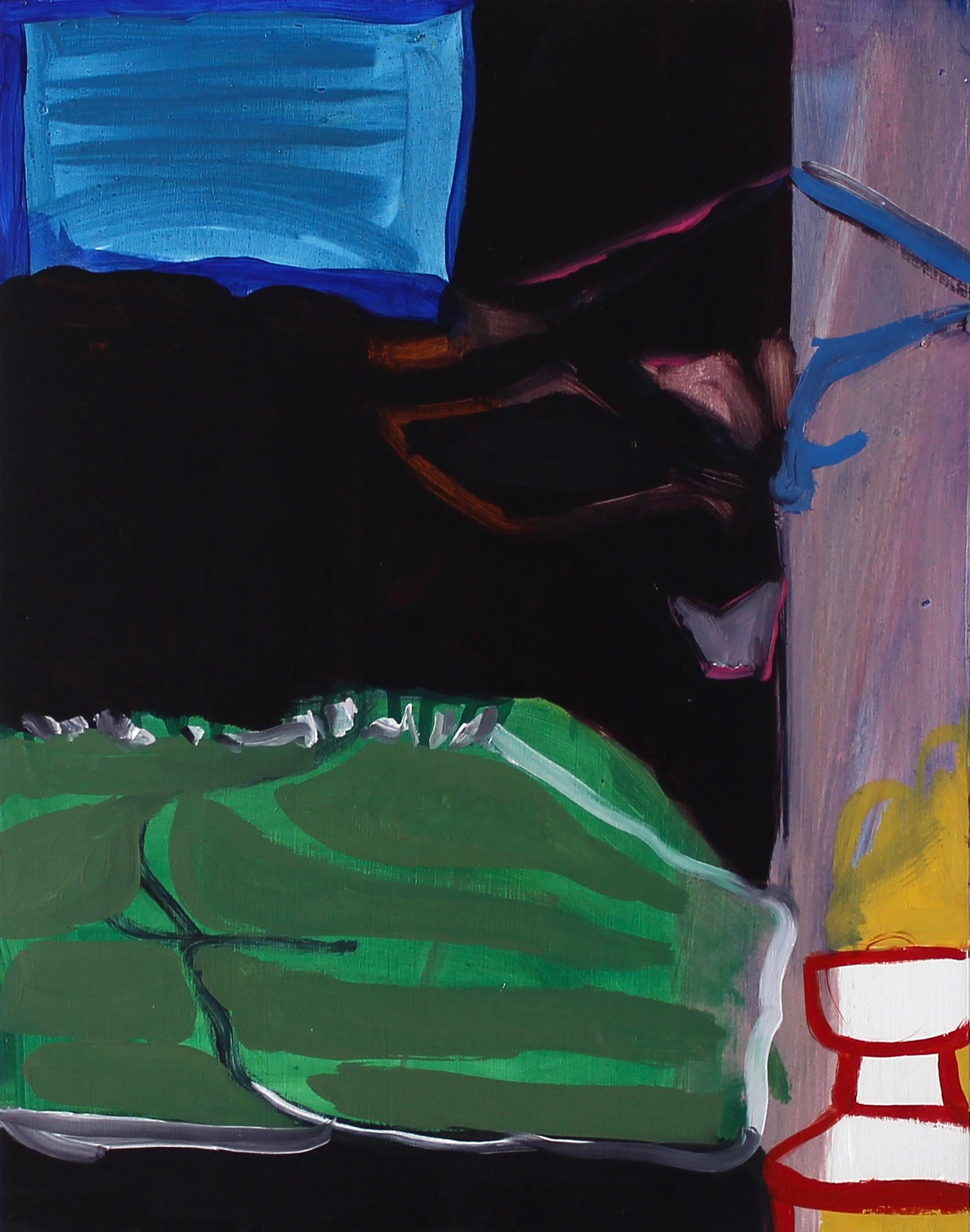 I create paintings and mixed-media collages inspired by the spaces I inhabit. I use memories, photographs, and prints as tools in navigating these spaces and combine them with my own imaginings of a different reality. Repetition is important to my process. It allows me to work through different media and explore the strangeness of the wandering mind. This feeling is also explored through the manipulation of logic: color is invented, perspective is flattened, and objects are fragmented and floating.