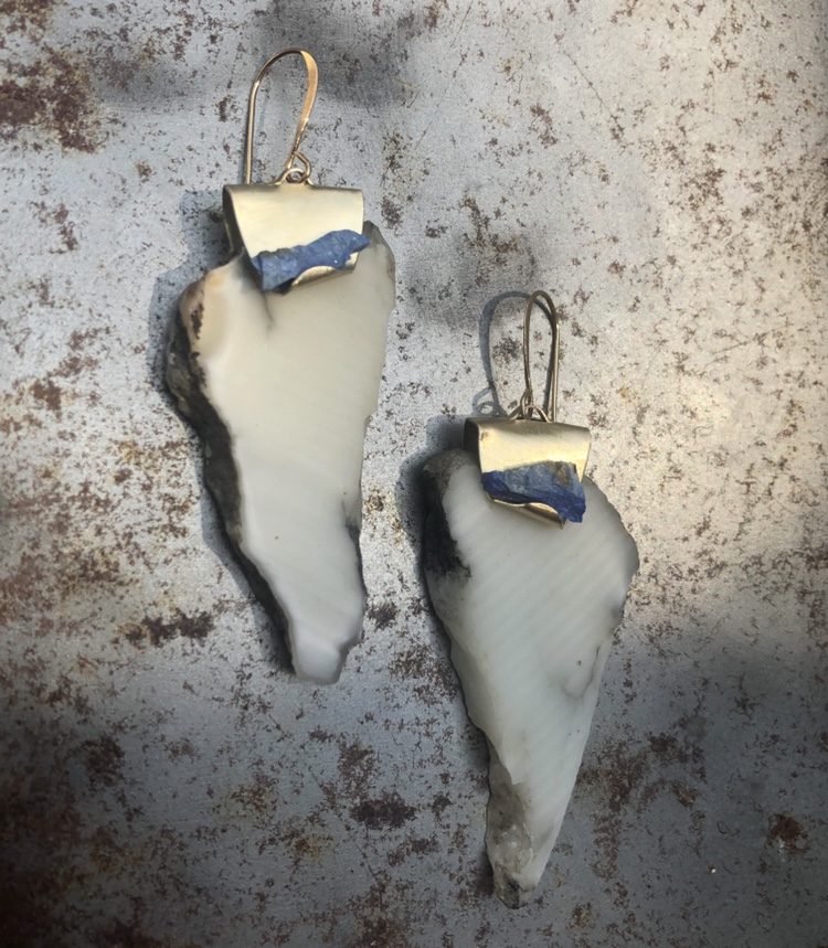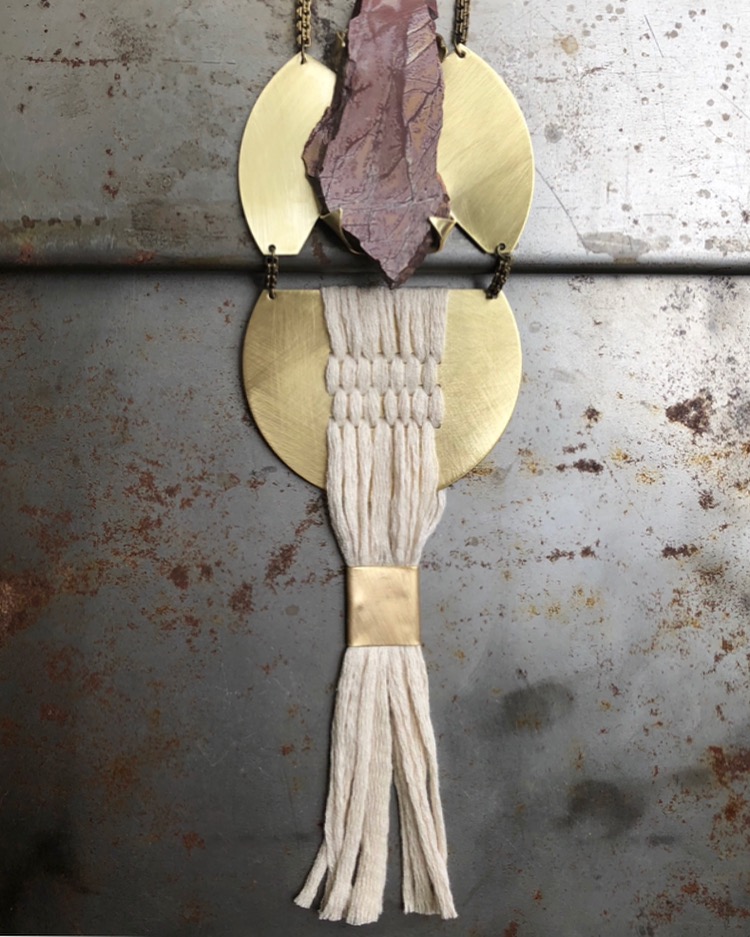 Above/Below aims to bring beautiful raw materials to the surface to be viewed and worn and appreciated. I’m very interested in mixing mediums and creating work that incorporates stones & minerals, brass, fibers, ceramics and recently plexiglass. The jewelry I make is influenced by architecture, mobiles, science and the quest to balance oneself with their environment,