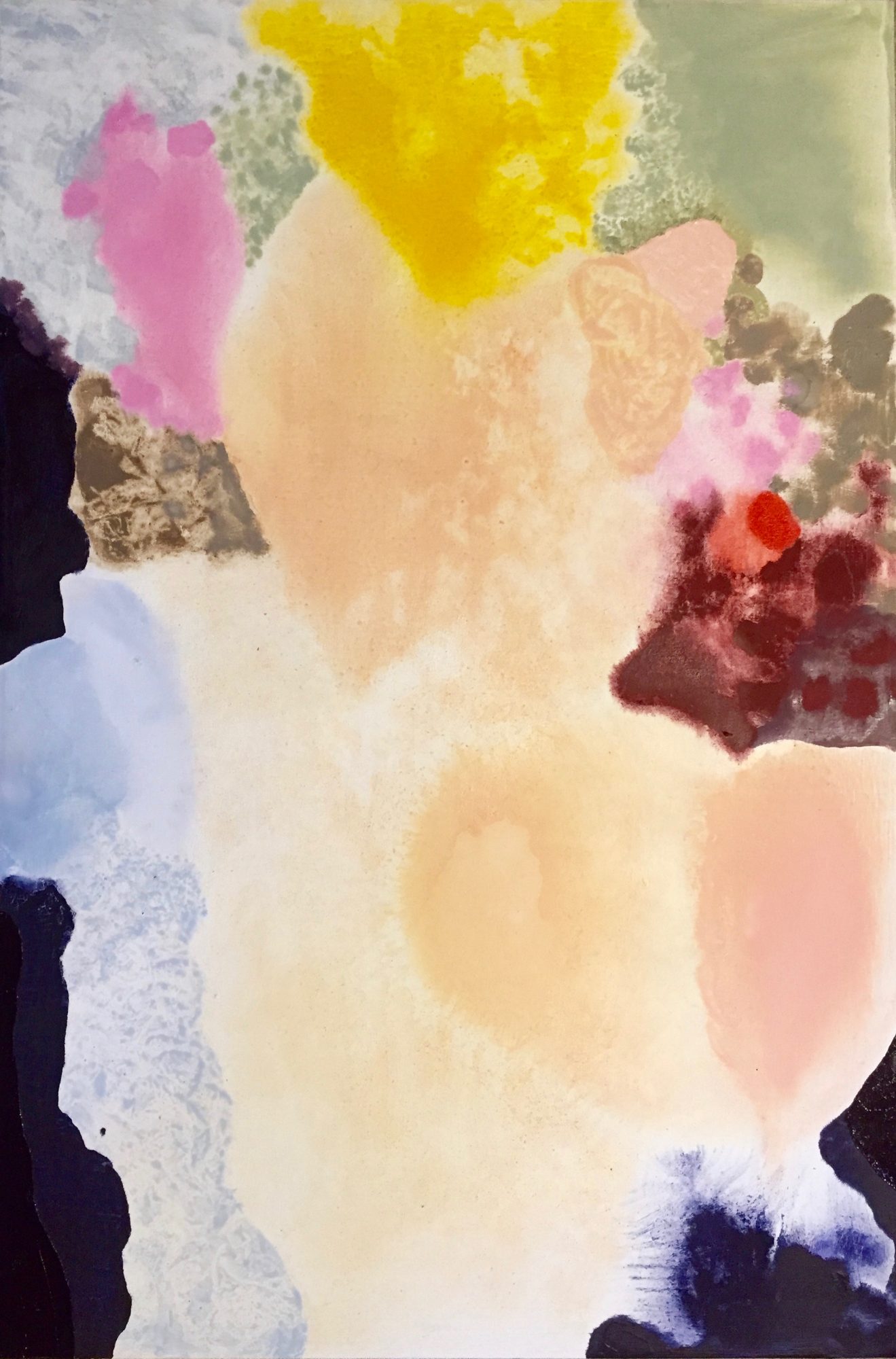 My paintings are mostly made by pouring, blotting, spraying, dripping, and wiping paint. I am interested in manipulating paint in ways that minimize the evidence of my hand’s gesture. I want to create painted forms that have a life of their own that are spontaneous and surprising. Painting is an experimental process for me. I can feel a painting is finished when I’ve discovered something unique and new in the relationship between the painted forms on the surface.